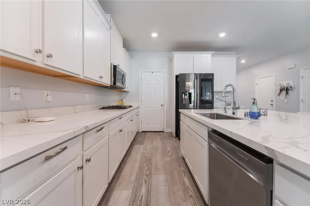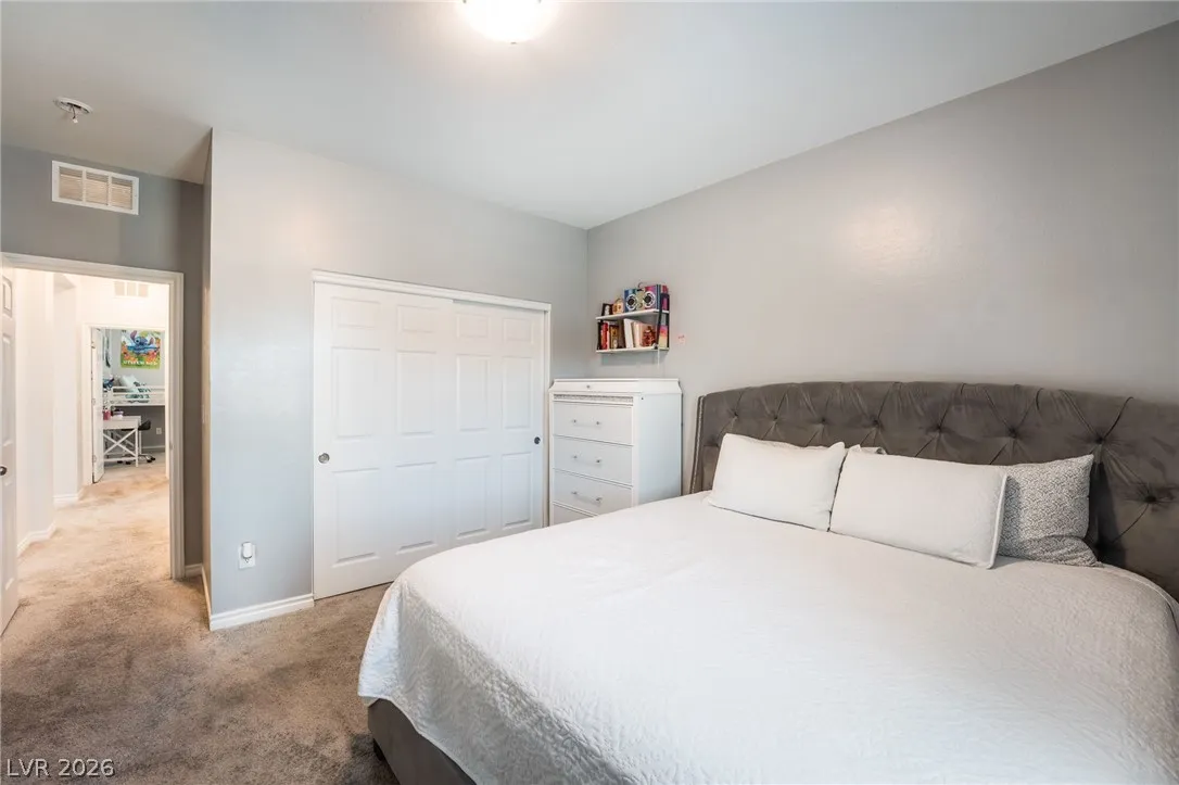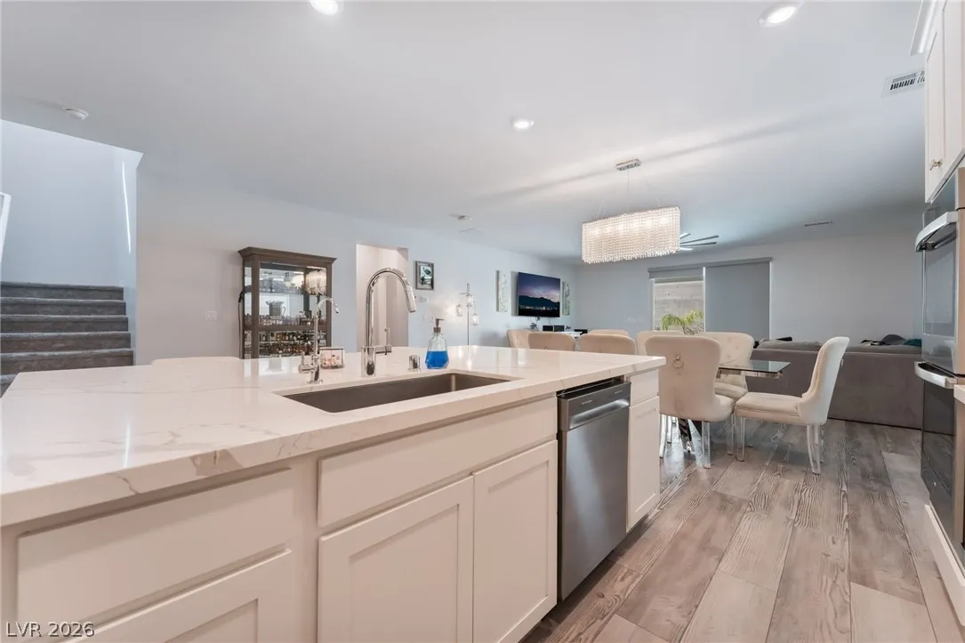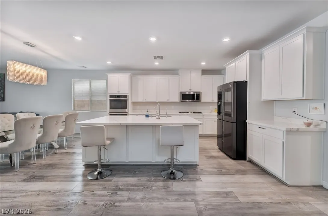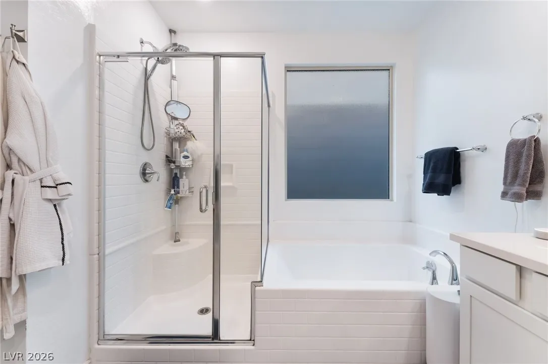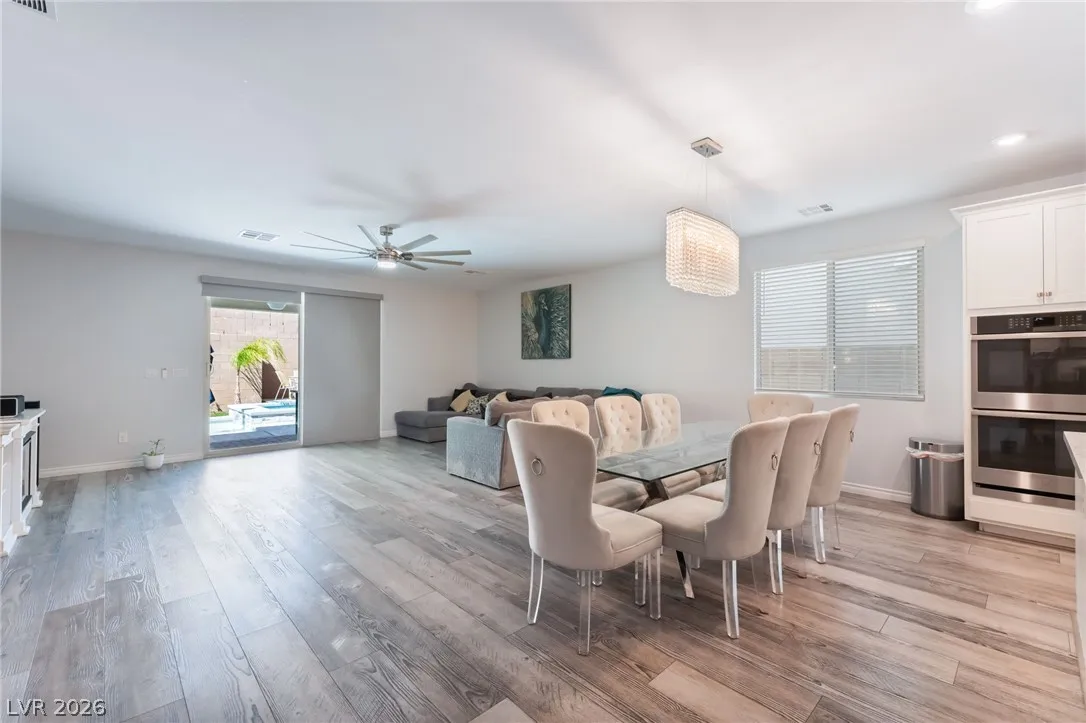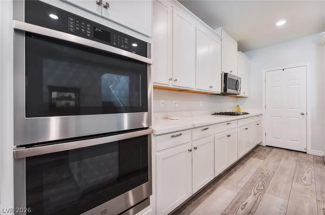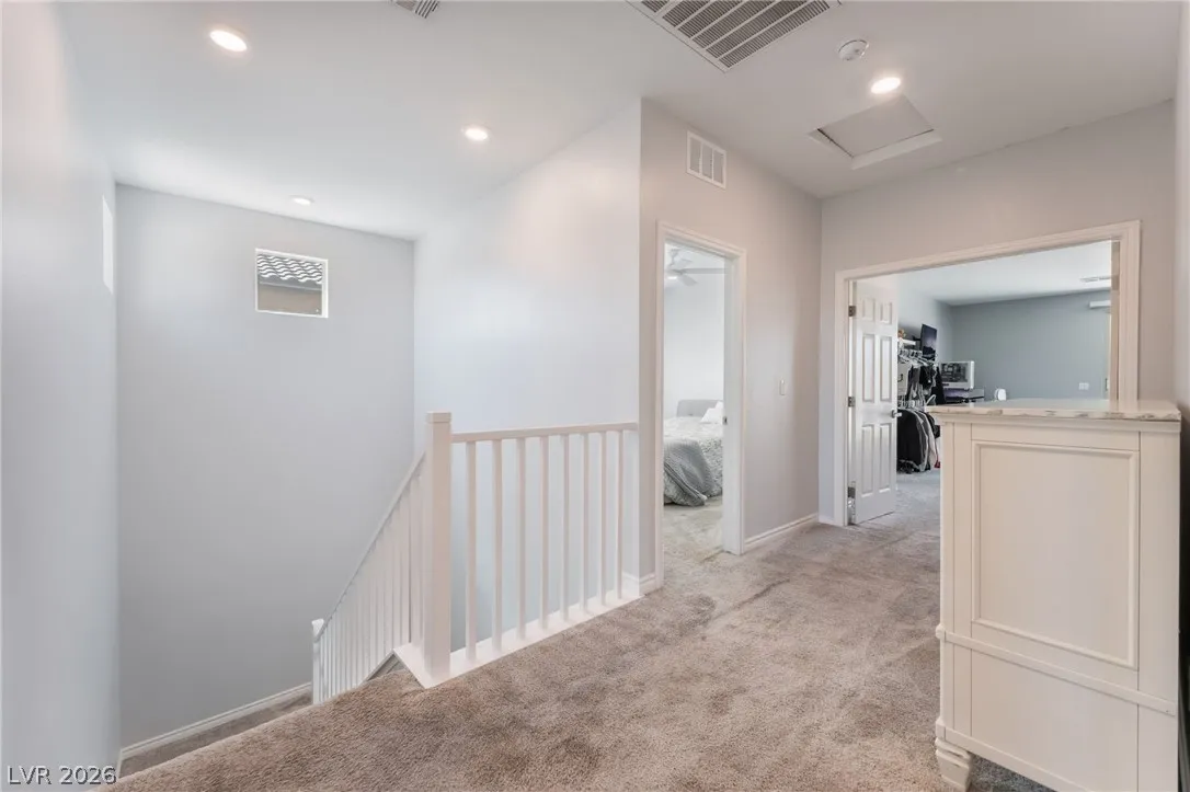 Step into luxury with this impressive five bedroom, four and a half bathroom residence nestled in the highly sought after Skye Canyon community. The primary suite is conveniently located on the main level, featuring a sophisticated bathroom and a private washer and dryer integrated directly into the walk in closet. The heart of the home is a sprawling gourmet kitchen equipped with elegant quartz countertops, stainless steel appliances, abundant cabinetry, and a spacious walk in pantry. The second floor offers generously sized bedrooms with walk in closets, alongside a versatile loft, a dedicated office, and a full laundry room. Outdoor living is a highlight, with a beautiful balcony perfect for seasonal relaxation and a spectacular inground pool in the backyard. Just a short walk from the community center, residents enjoy full access to premium Skye Canyon amenities in a location that perfectly blends comfort and convenience.