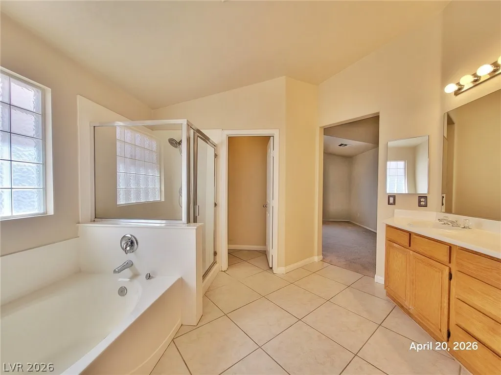 Beautiful single-story home featuring an open and airy floor plan with vaulted ceilings, spacious living room with fireplace, and abundant natural light. Large kitchen offers ample cabinet space, breakfast bar, and separate dining area. Generous primary suite includes dual sinks, soaking tub, separate shower, and oversized walk-in closet. Secondary bedrooms are well-sized with versatile den that can be used as office or formal dining. Tile flooring in main living areas and carpet in bedrooms. Enjoy the low-maintenance desert landscaping, covered patio, and private backyard—perfect for relaxing or entertaining. Two-car garage. Conveniently located near shopping, dining, parks, and freeway access. Move-in ready!