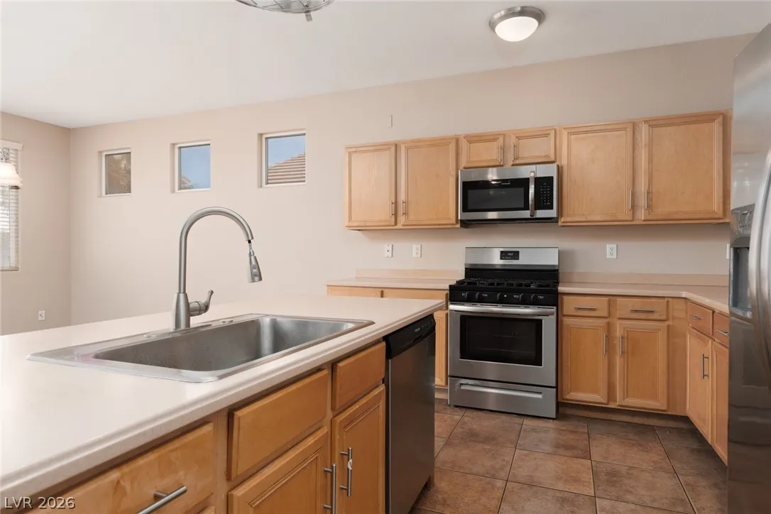 Spacious, Open-Concept in an Unbeatable Northwest Location! Experience a great functional floor plan where every room feels large, open, & welcoming. The kitchen is a chef-friendly hub with ample cabinets & generous counter space, seamlessly connected to the family room & living room to create one expansive, social living area. The primary bedroom is thoughtfully separated from the other bedrooms. Enjoy a large en-suite bathroom with a separate tub & shower, plus a walk-in closet for ample storage. The front yard has low-maintenance synthetic grass, while the rear yard features desert landscaping—more time enjoying the home & less time on upkeep. Located minutes from Floyd Lamb/Tule Springs Park for biking, picnics, and fishing in 4 huge urban ponds. Mt. Charleston is only 25 minutes away for hiking, camping, skiing, biking, and outdoor recreation, easy freeway access, shopping, Paiute Golf Course, and excellent schools. Only 45 minutes to Creech Air Force Base!