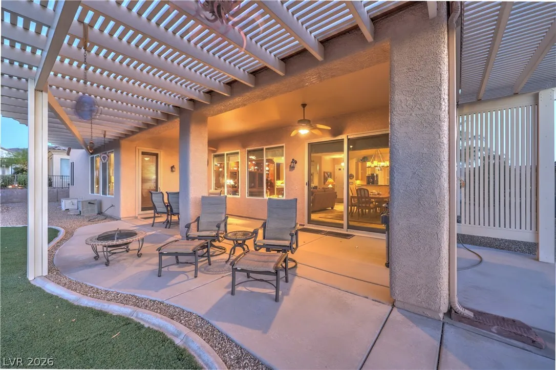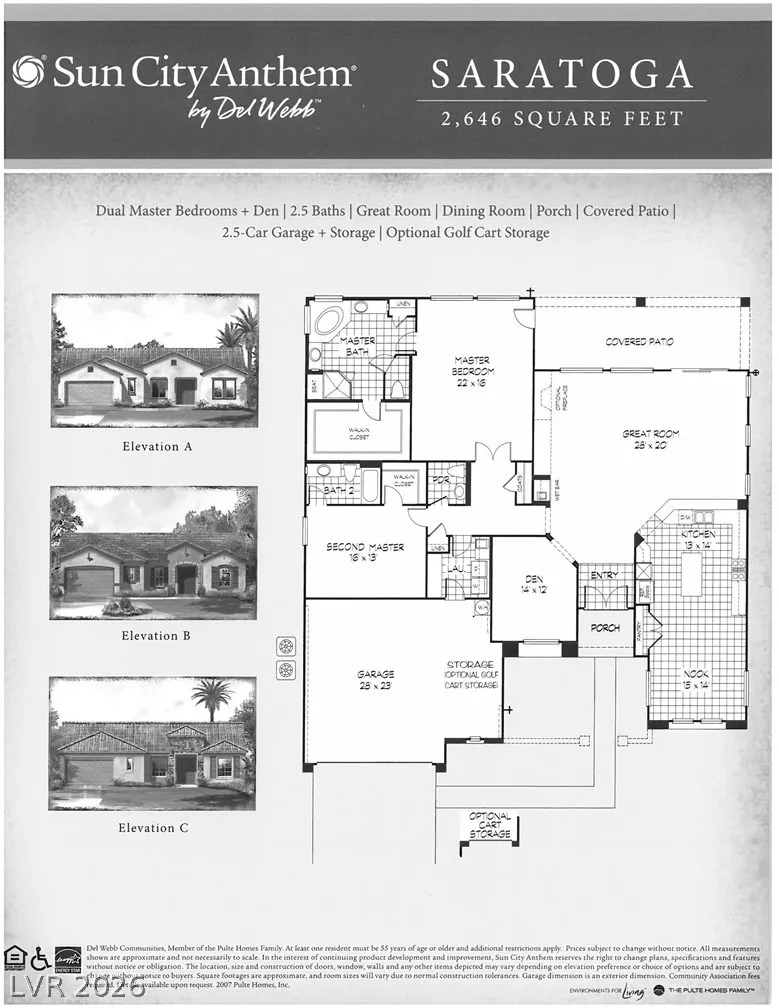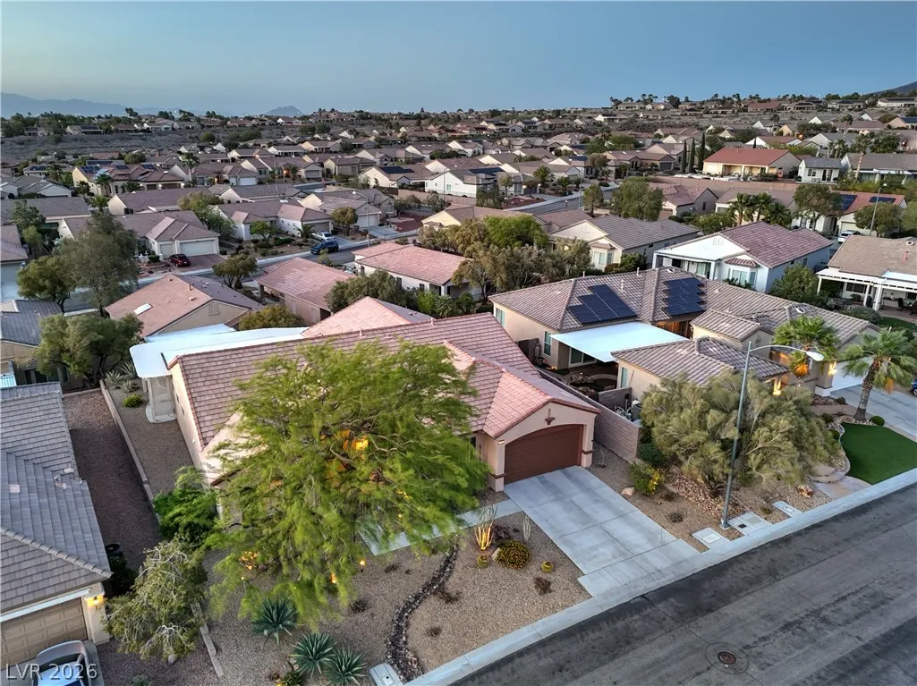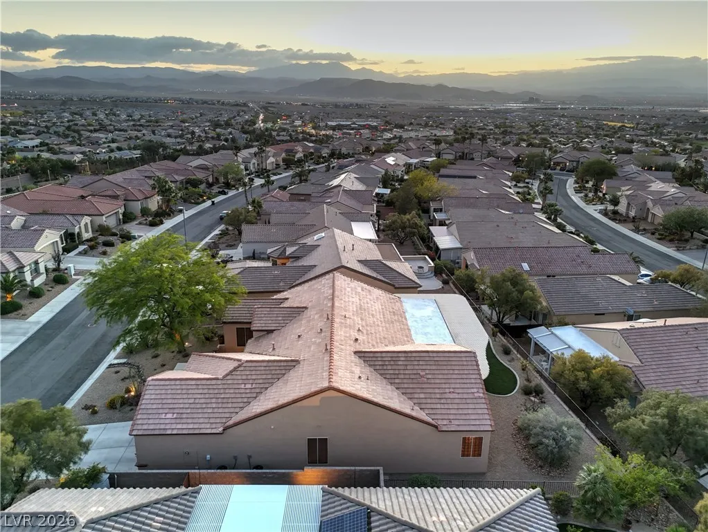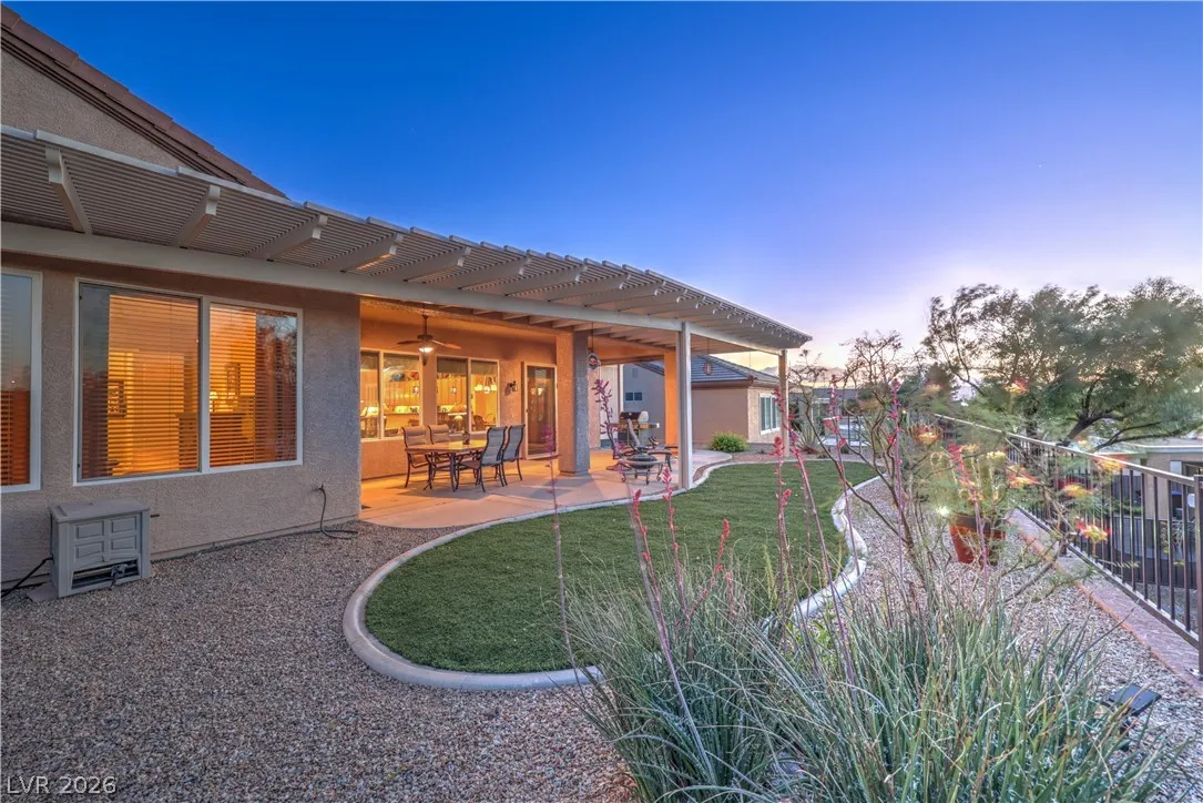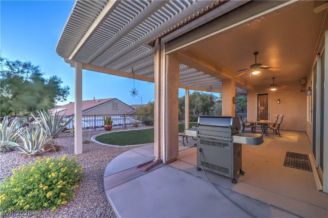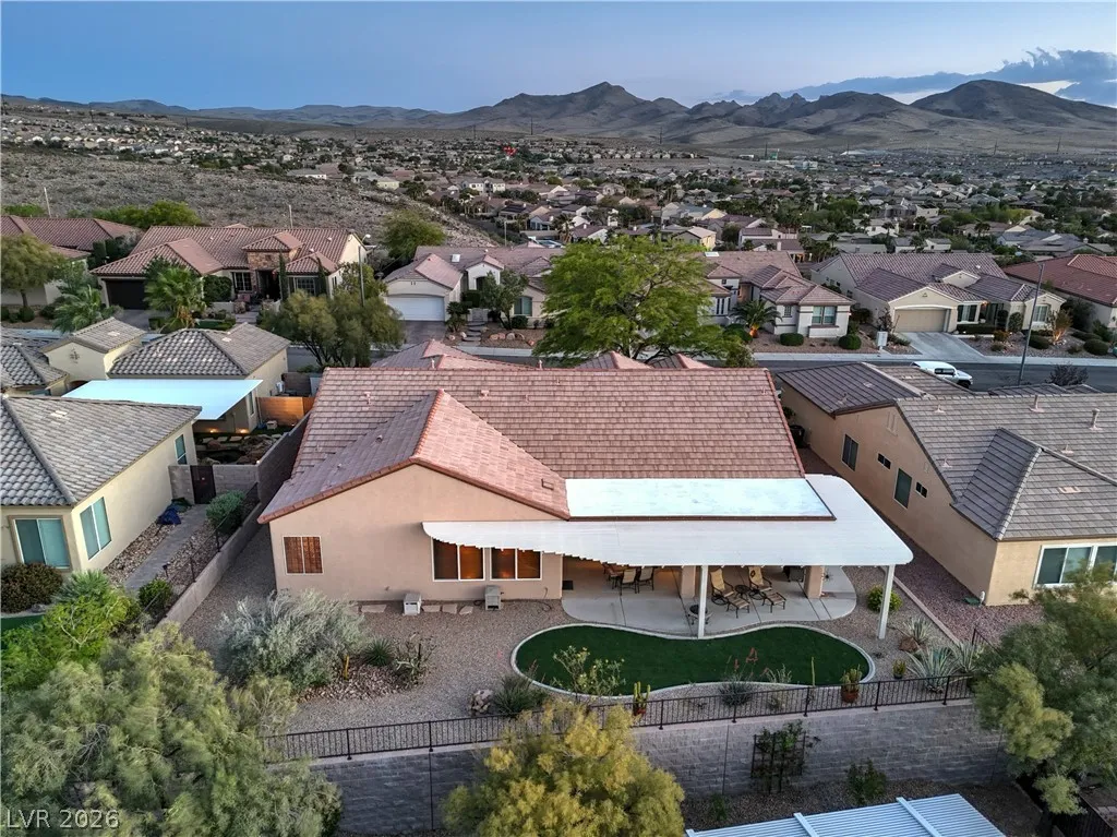 Spectacular Saratoga model on premium elevated lot with mountain views! Featuring 2 bedroom suites, den/office, 2.5 baths, & a 2.5 car garage. Gated courtyard entry with upgraded security doors leads to a spacious great room with celling fan, wet bar, surround sound, custom built-in, and tile flooring. Island kitchen boasts granite countertops, upgraded cabinets w/pull-pot shelves & under cabinet lighting, pendant lights, breakfast bar, nook, and pantry. Owner’s suite w/ ceiling fan, sitting area, walk-in closet, patio access, & luxurious bathroom. Jr suite w/ceiling fan, walk-in closet, & private bath. Den w/ ceiling fan & porcelain tile flooring, guest powder bath, laundry room w/ utility sink, two Lennox HVAC systems (Oct 2025), exterior paint (Aug 2025), plantation shutters, water conditioning system, solar screens, & security features. Backyard features a covered patio w/ pergola extension, ceiling fans, & low-maintenance landscaping. Premier 55+ community with top-tier amenities!