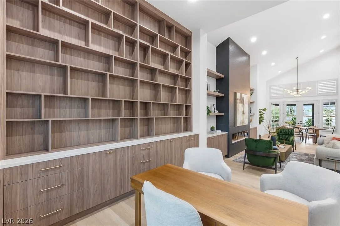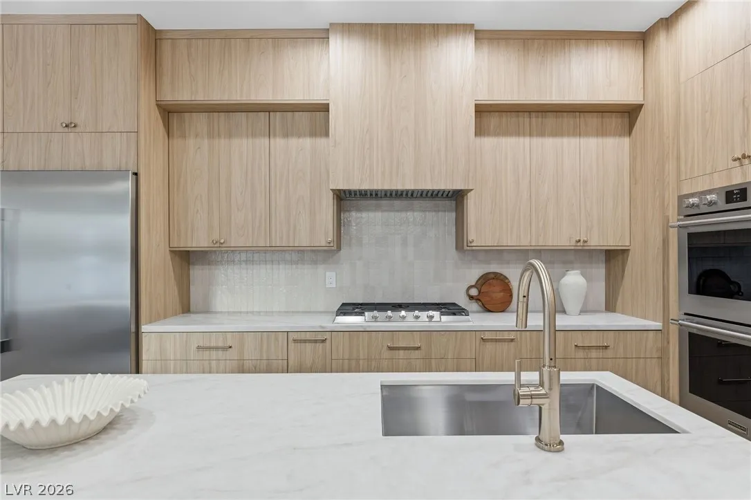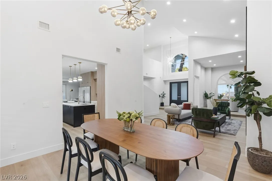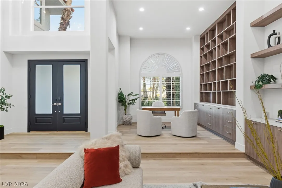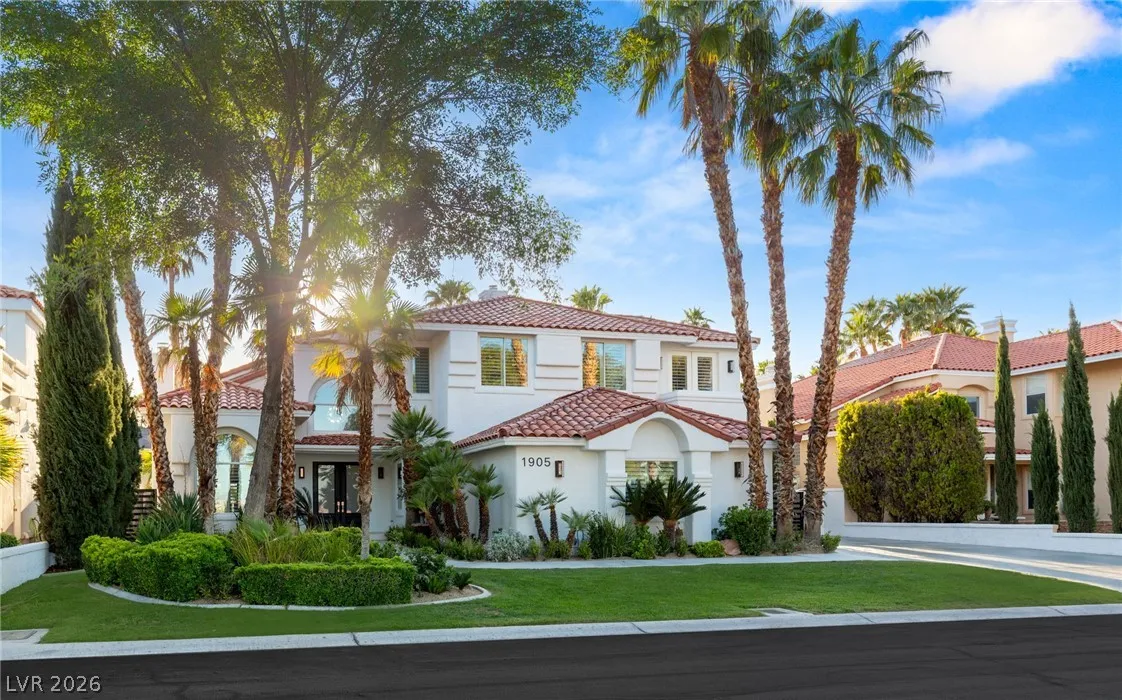 Reimagined with a modern edge, this 2-story luxury home offers 4,202 sq ft, 4 bedrooms, 4 baths, and a 3-car garage in guard-gated Canyon Gate Club. An abundance of natural light highlights new flooring, custom built-ins, updated fireplaces, and sleek designer finishes throughout. The chef’s kitchen features top-of-the-line appliances, commercial-grade fridge/freezer, new sinks, and quartz countertops. The primary suite delivers a spa-like experience with a freestanding soaking tub, oversized dual-entry shower with two systems, and custom floor-to-ceiling closet. Outdoors, enjoy a redesigned pool and spa, new landscaping, built-in BBQ, and covered patio with awning. With new front and garage doors and refined upgrades throughout, this is a rare opportunity to own a fully renovated home in one of Las Vegas’ most established golf course communities.