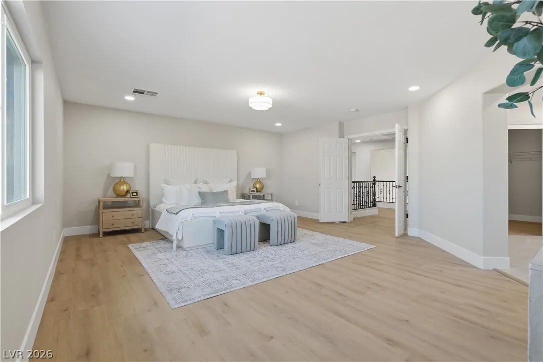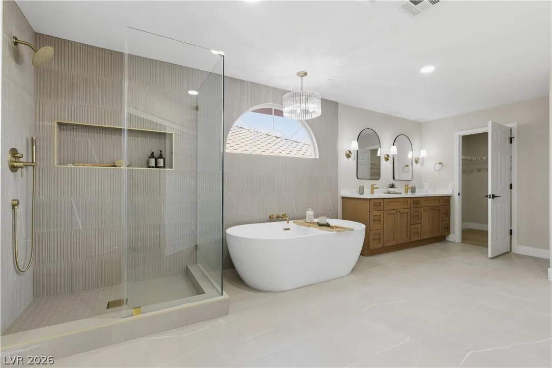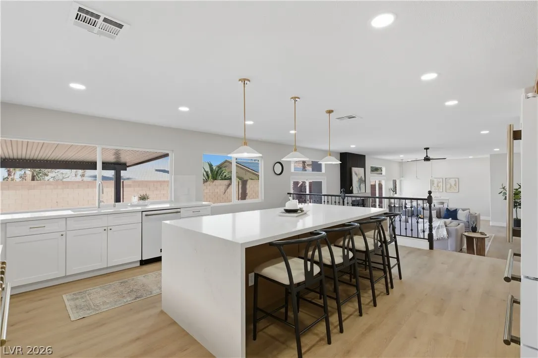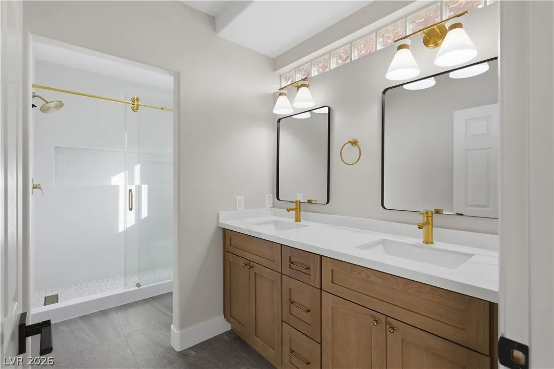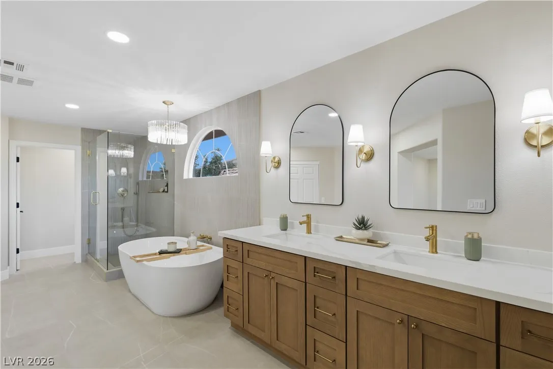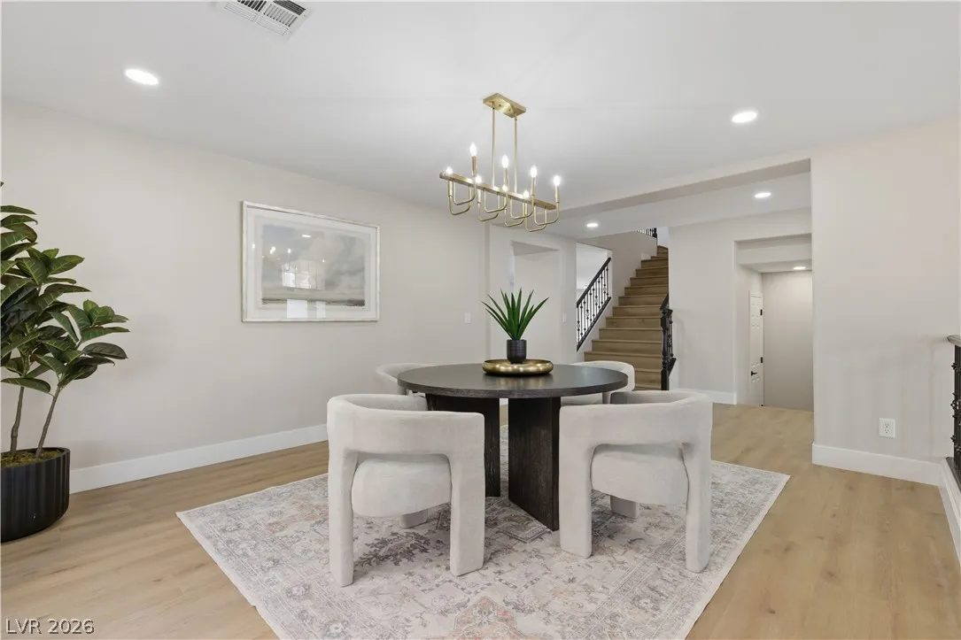 Enjoy the stunning remodeled, 2-story home featuring 6 bed. loft & a basement, nestled within the sought after gated community of Coronado Ranch. Designed for elevated living and refined entertaining, the property offers a private backyard w/ a covered patio, in-ground pool & spa, a 3-car garage, balcony & elegant custom-paved driveway. The interior is filled w/natural light, showcases vaulted ceilings, chandeliers, modern lighting, tiled fireplaces, custom built-ins, and a wet bar w/seating. Plush carpeting & laminate wood flooring create a seamless blend of comfort and contemporary style. The kitchen is a true centerpiece with custom oak cabinetry, quartz countertops, premium stainless steel appliances, recessed lighting, a cooktop w/ garden views, and a waterfall-edge island. Spa-inspired baths feature dual vanities, framed mirrors, modern lighting, separate soaking tub in primary,custom-tiled showers w/built-in niches & rainfall shower heads. Beautifully finished & move-in ready!