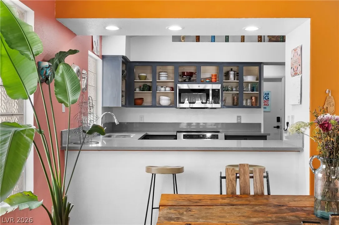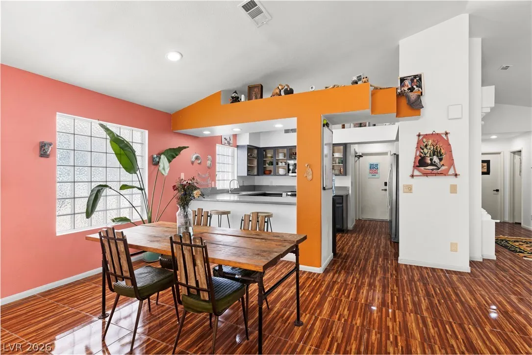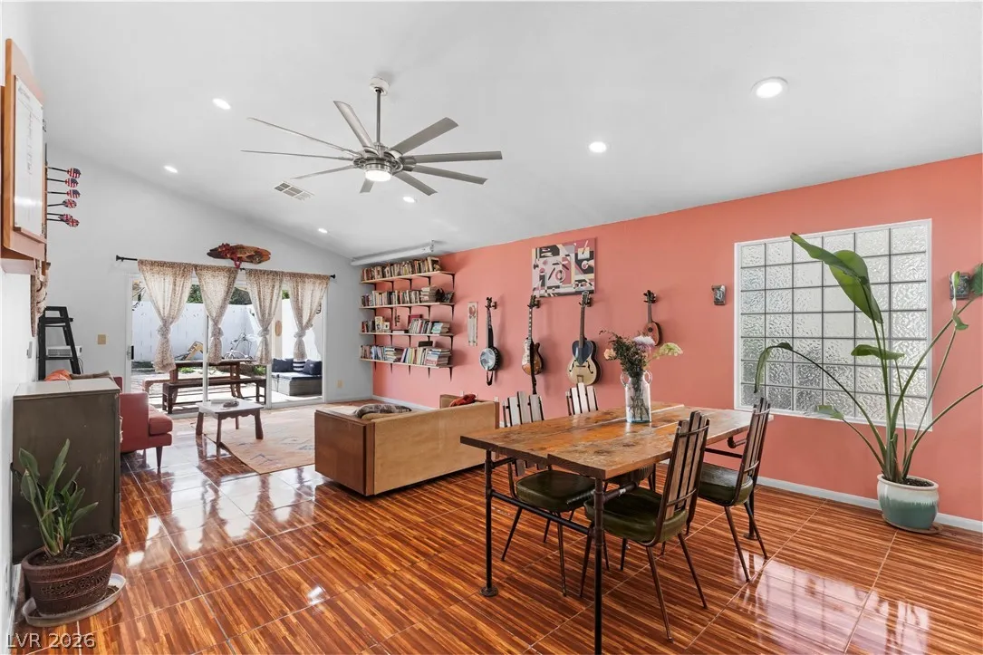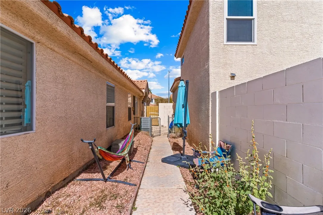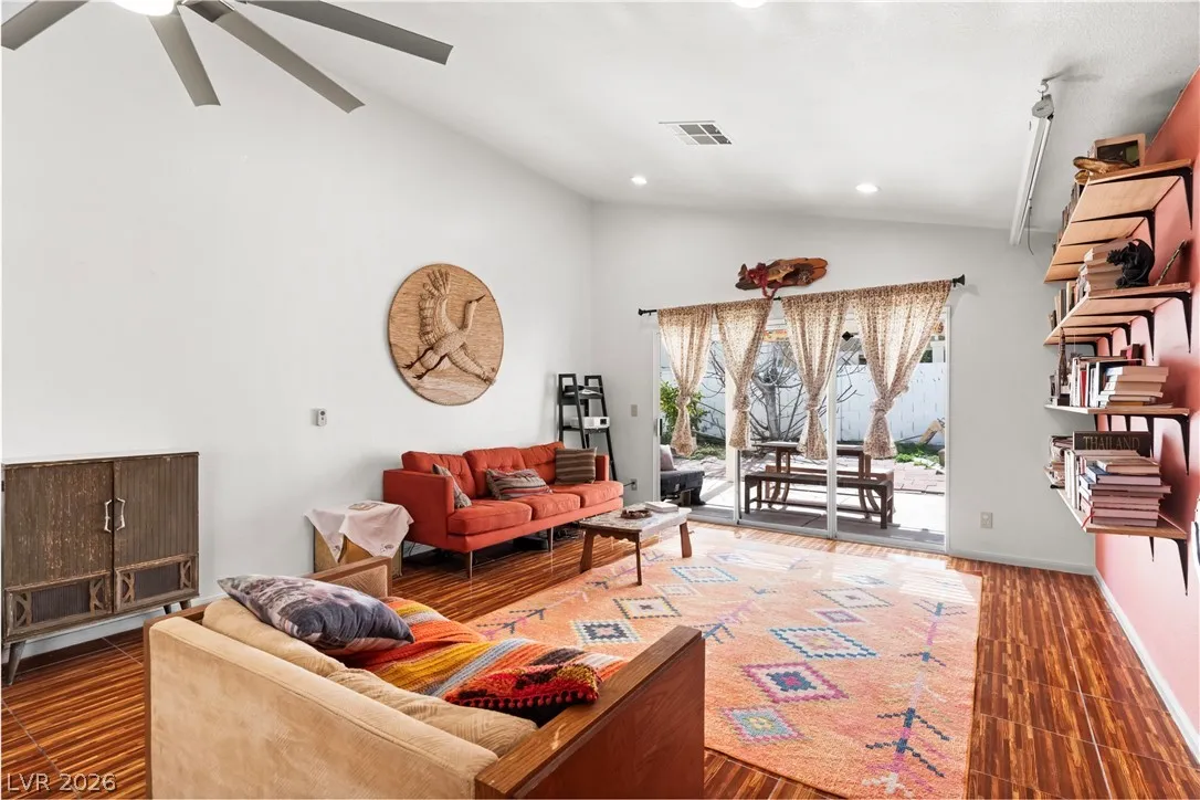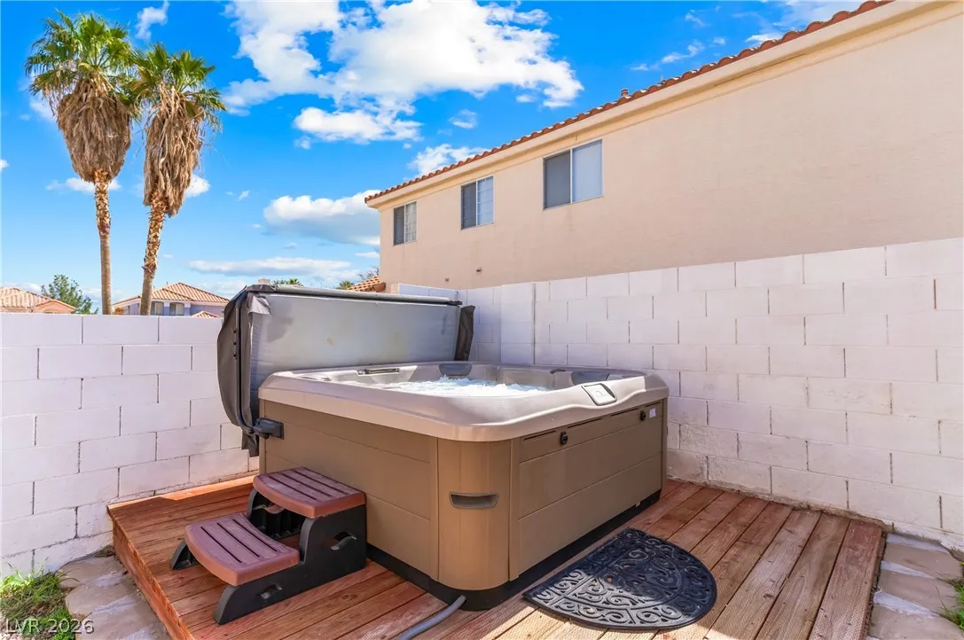 Charming single-story gem offering 1,500 sq ft with 2 bedrooms, a versatile den, 2 full baths, and a 2-car garage. Ideally located near Summerlin with easy freeway access and right next to American Sports Park, this home delivers both convenience and lifestyle. Recently remodeled and move-in ready, it features paid-off solar and no gas bill for added efficiency and savings. Upgrades include newer HVAC, a new water heater, and a modern kitchen with a Bosch dishwasher and induction range. Enjoy a private backyard retreat with a covered patio, mature fig and pomegranate trees, and a 6-person hot tub with LED lighting—perfect for relaxing or entertaining. Close to parks, shopping, dining, and scenic bike trails.