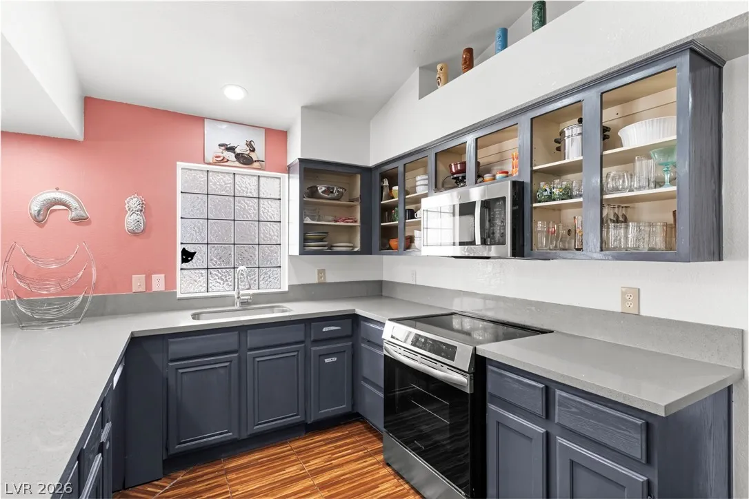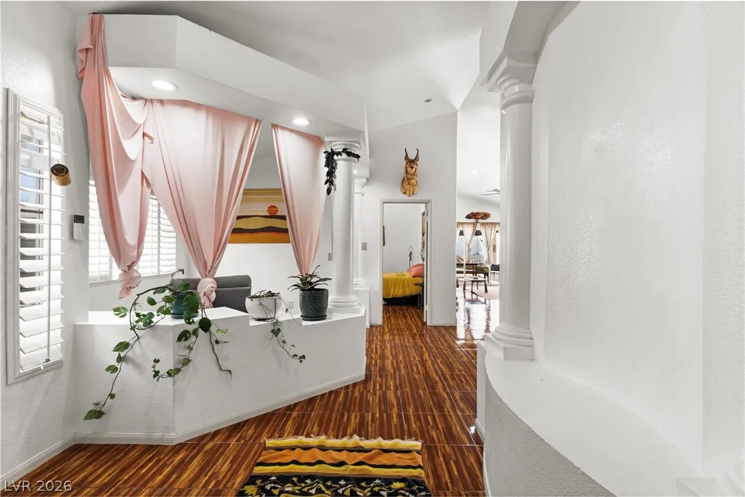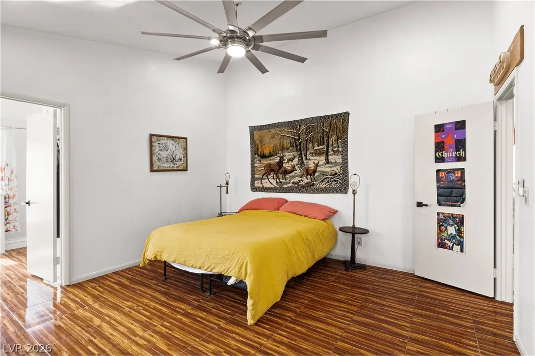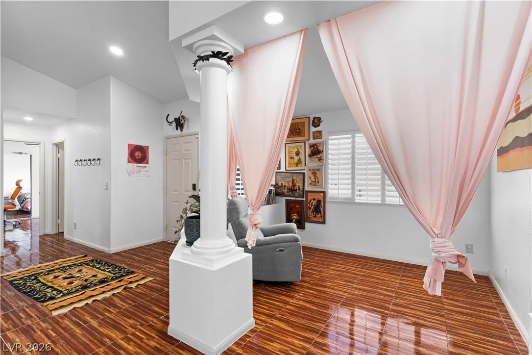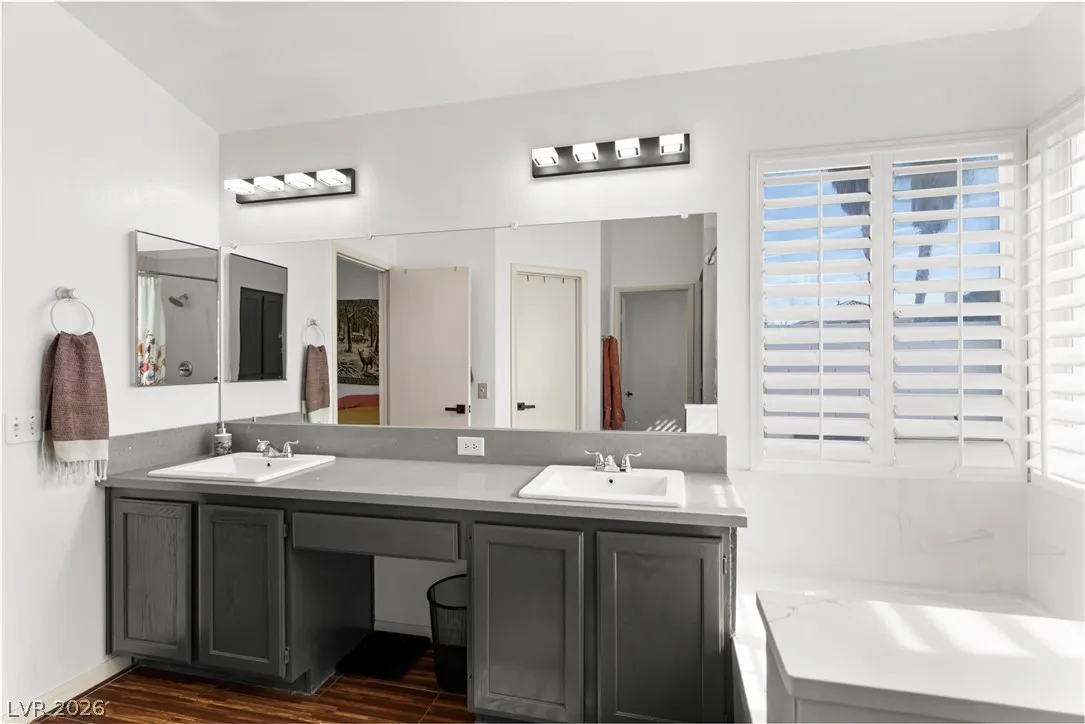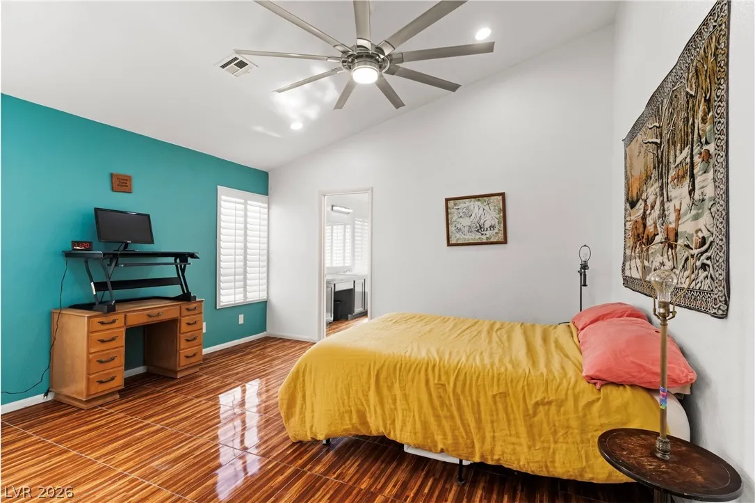 Charming single-story gem offering 1,500 sq ft with 2 bedrooms, a versatile den, 2 full baths, and a 2-car garage. Ideally located near Summerlin with easy freeway access and right next to American Sports Park, this home delivers both convenience and lifestyle. Recently remodeled and move-in ready, it features paid-off solar and no gas bill for added efficiency and savings. Upgrades include newer HVAC, a new water heater, and a modern kitchen with a Bosch dishwasher and induction range. Enjoy a private backyard retreat with a covered patio, mature fig and pomegranate trees, and a 6-person hot tub with LED lighting—perfect for relaxing or entertaining. Close to parks, shopping, dining, and scenic bike trails.