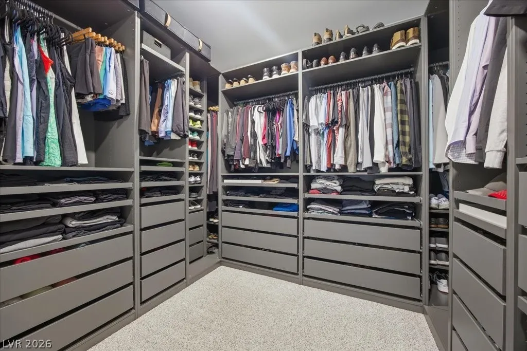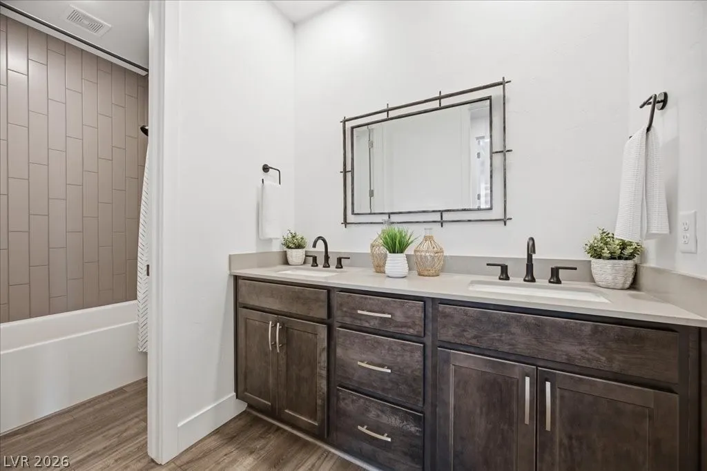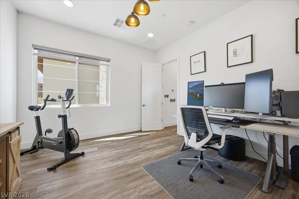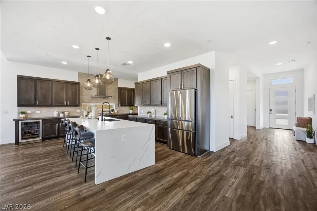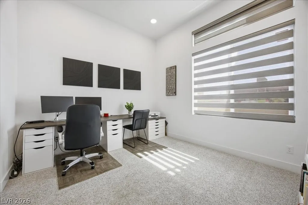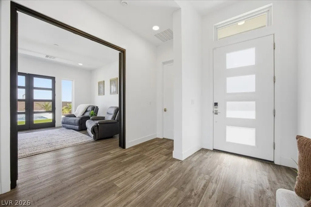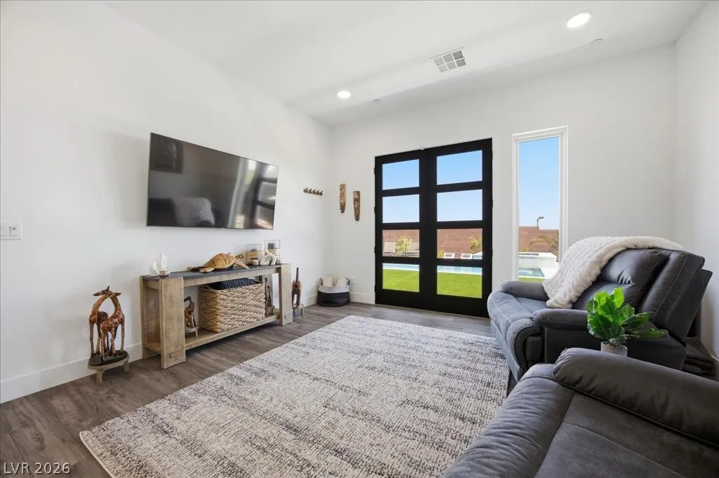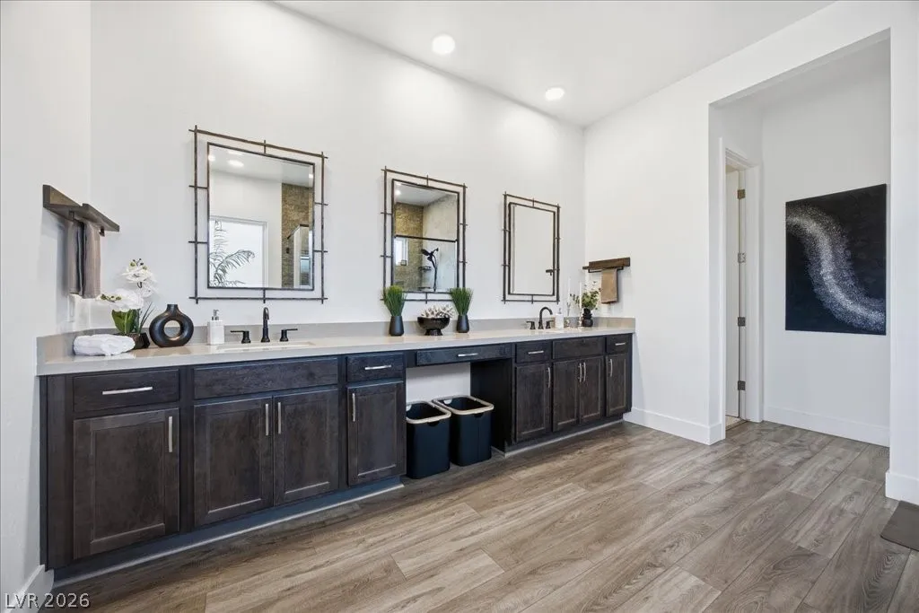 Modern single-story in the highly coveted Overlook Community of Summerlin West! Perched on a 1/3-acre elevated lot, this home offers sweeping mountain views along with partial city and Strip views. The floorplan features 4 spacious bedrooms in separate wings, including a primary suite with stunning mountain views. Designer finishes include a waterfall-edge quartz island, Monogram stainless-steel appliances with wine fridge, tankless water heater, whole-home water conditioner, and a 3-car garage with epoxy floors.The backyard is an entertainer’s dream with a travertine-finished pool with automated features and professional landscape lighting. Conveniently located near the Paseo walking trail, top-rated schools, parks, and just minutes from Downtown Summerlin’s shopping, dining, and entertainment. Welcome home!