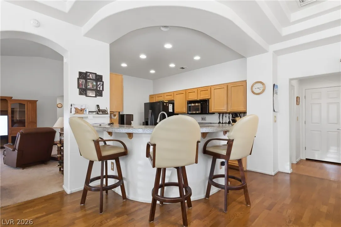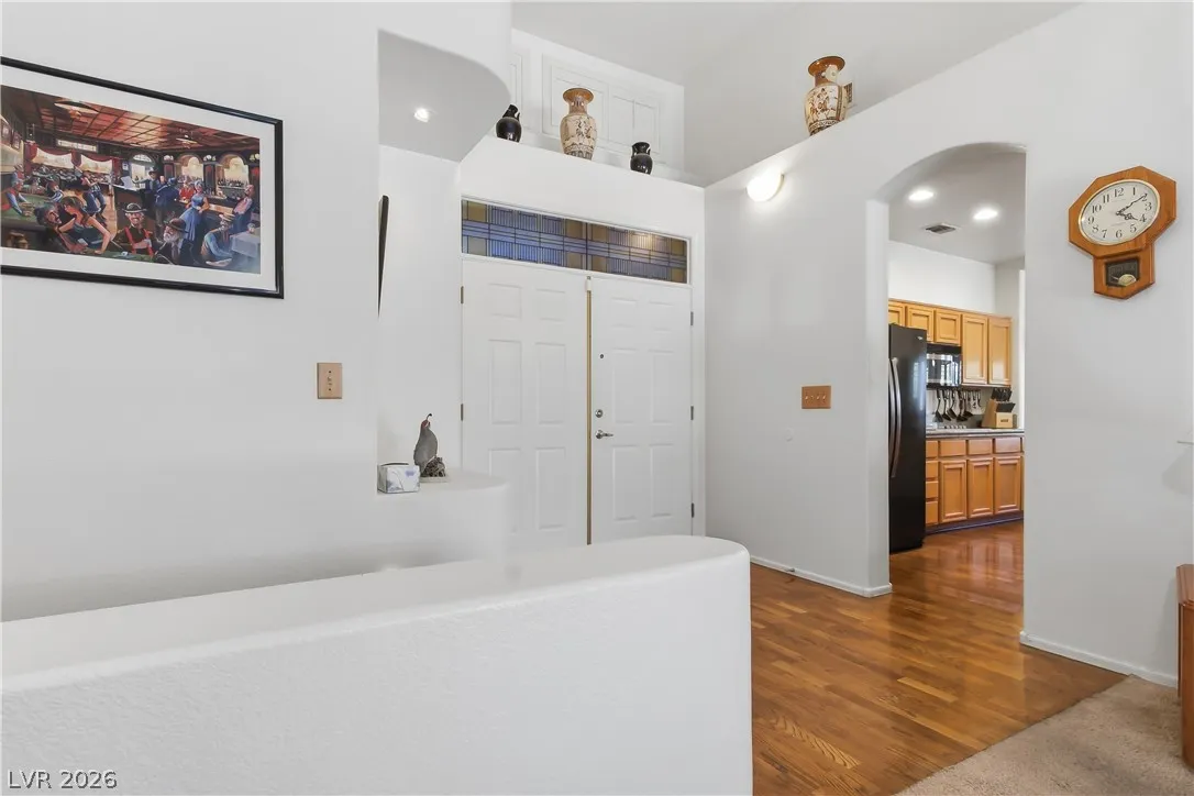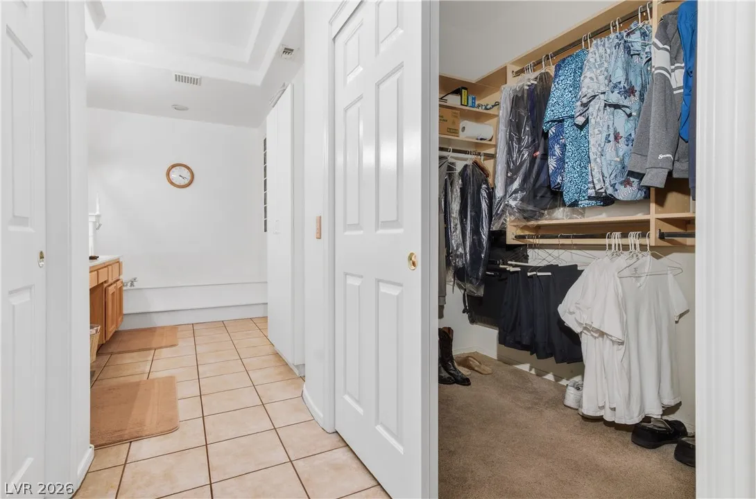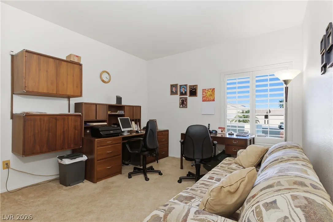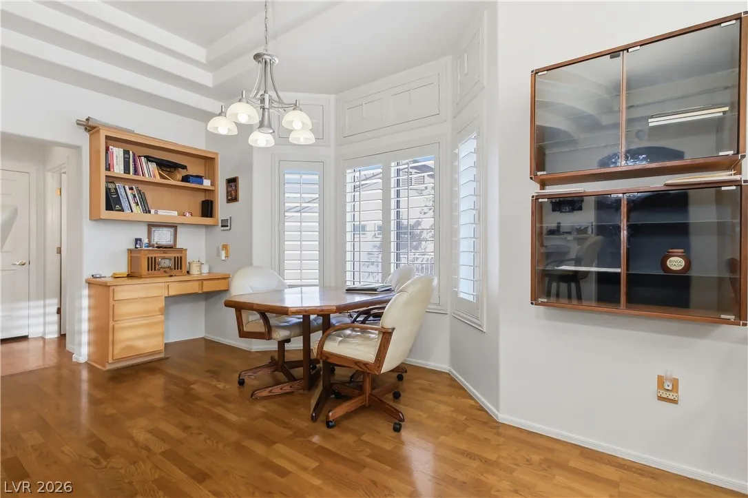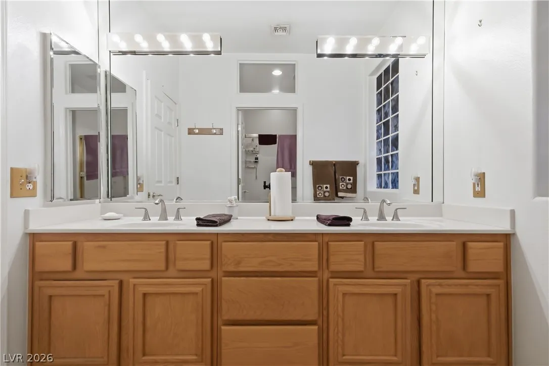 Located in the premier 55+ Sun City Summerlin community, this 2,210 sq ft, 3-bedroom Belmont model offers access to 3 golf courses, 4 clubhouses, pools, fitness centers, sports courts, clubs, and extensive amenities. The home includes an optional half bath off the kitchen/great room and backs to a greenbelt with no rear neighbors. A gated entry opens to a large foyer overlooking bright living and dining areas with expansive rear windows and serene greenery views. The open kitchen features updated appliances, granite tile counters, a curved breakfast bar, and a bay-window nook, flowing into a spacious great room with detailed ceilings. The rear primary suite offers a bay window, dual closets and vanities, plus separate tub and shower. Two additional bedrooms and a full bath are at the front. Extras include plantation shutters, ceiling fans, an oversized 2-car garage, covered patio, newer HVAC, and solar panels on a fixed PPA plan. Sun City Summerlin is a premier 55+ active community.
