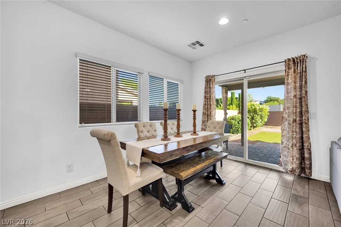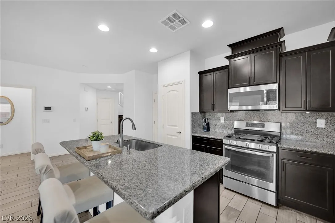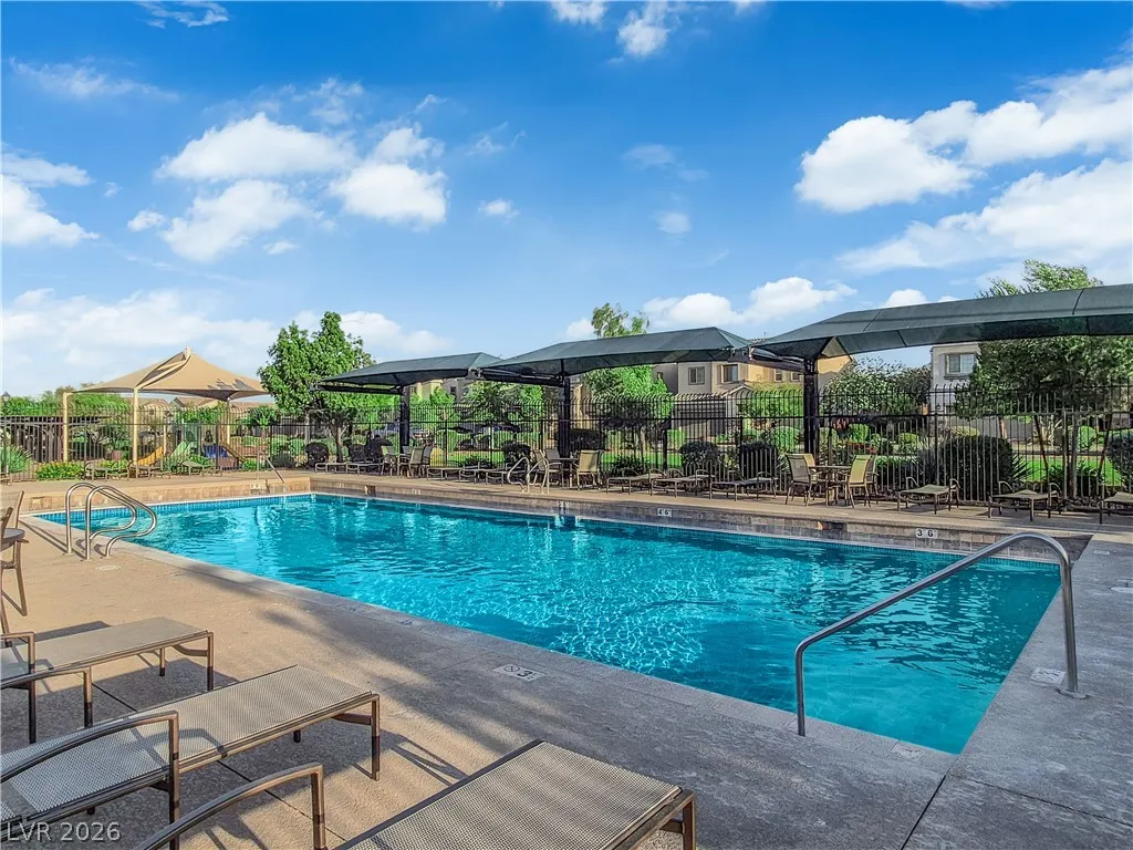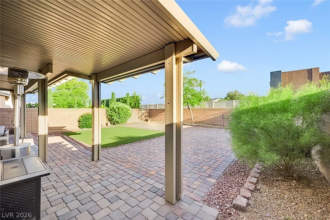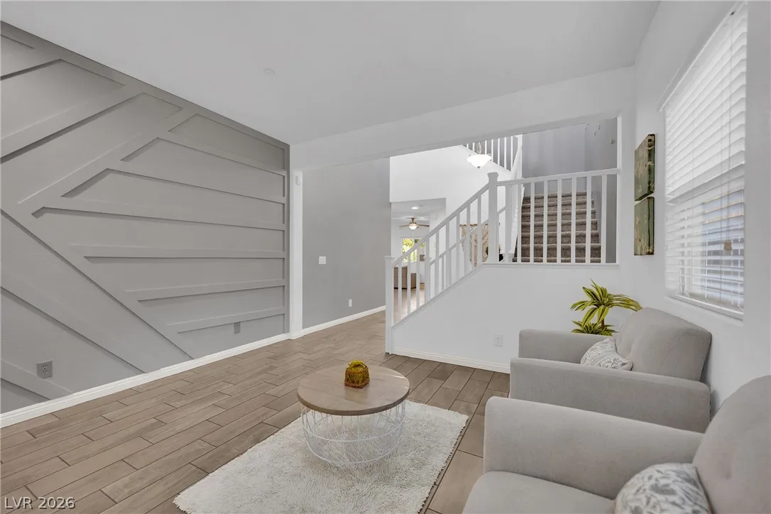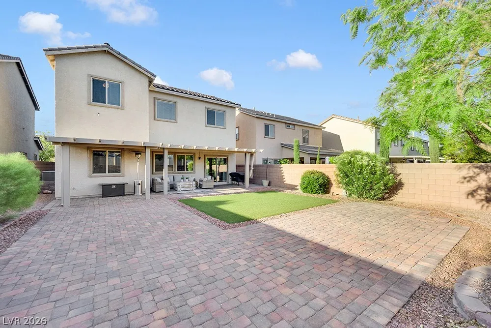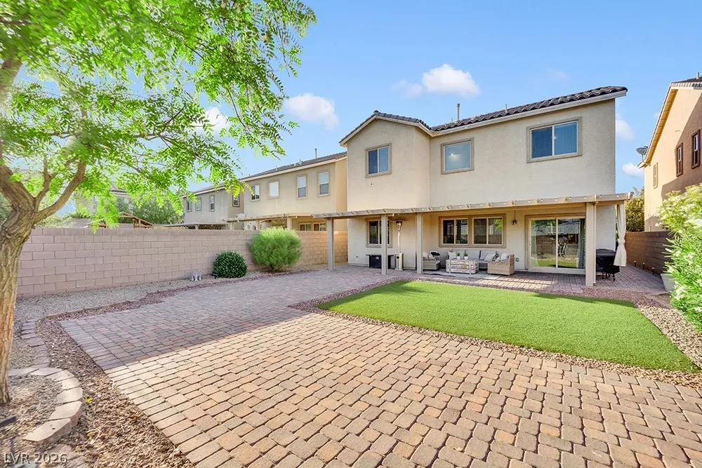 Stunning 2-story home in sought-after Warm Springs Ranch in Henderson! This 3-bedroom home features an ideal open floor plan with a spacious great room, an upstairs loft, and modern smart home features. The upgraded kitchen is the heart of the home, showcasing custom cabinets, granite countertops, a designer backsplash, and stainless steel appliances. Elegant wood plank ceramic tile flooring enhances the main living spaces. Step into the expansive pool-sized backyard with a covered patio, pavers, and synthetic grass—perfect for entertaining, relaxing, or future pool plans. Residents enjoy fantastic community amenities including a pool, park, and barbecue area. Beautifully upgraded and move-in ready, this home offers comfort, style, and convenience all in one.