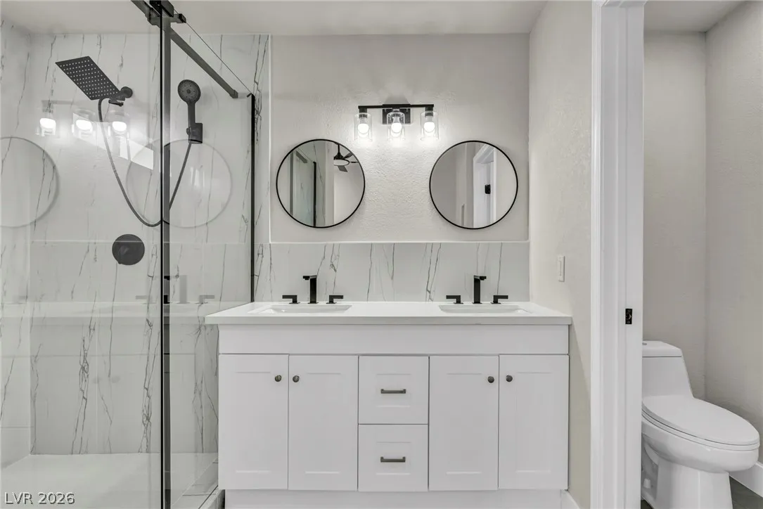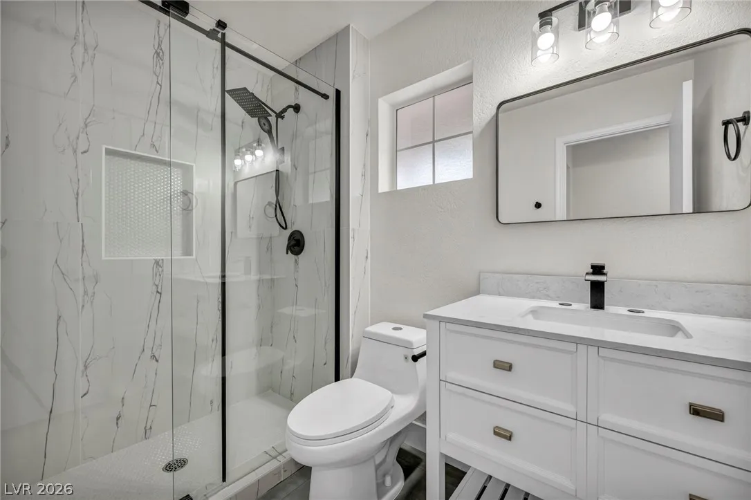 The home boasts high vaulted ceilings, recessed lighting, and luxury high baseboards throughout. Retreat to bedrooms featuring premium carpeting and generous walk-in closets. The spa-like bathrooms offer extra-large walk-in showers and dual vanities. Every detail has been considered: a tankless water heater, finished garage flooring, and a brand-new, oversized washer/dryer. Thoughtfully designed and fully renovated, this move-in-ready home stands in a class of its own. It looks even better in person. Schedule your private tour today!