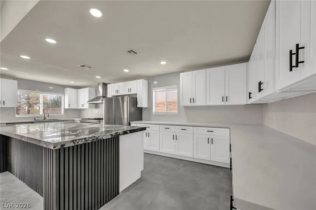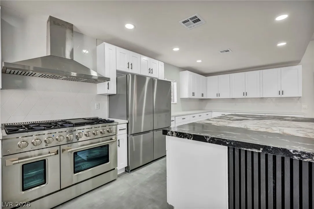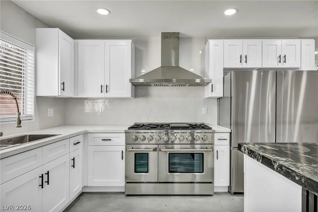 Welcome to Sun City Summerlin. This one-of-a-kind, fully reimagined masterpiece showcases luxury living at its finest. The designer open-concept floor plan centers around a stunning Italian extra-large marble island in a top-of-the-line gourmet kitchen. Featuring brand-new stainless steel appliances, an oversized refrigerator, and a premium dual-fuel slide-in range with a gas cooktop and electric convection oven, this kitchen is a culinary dream.