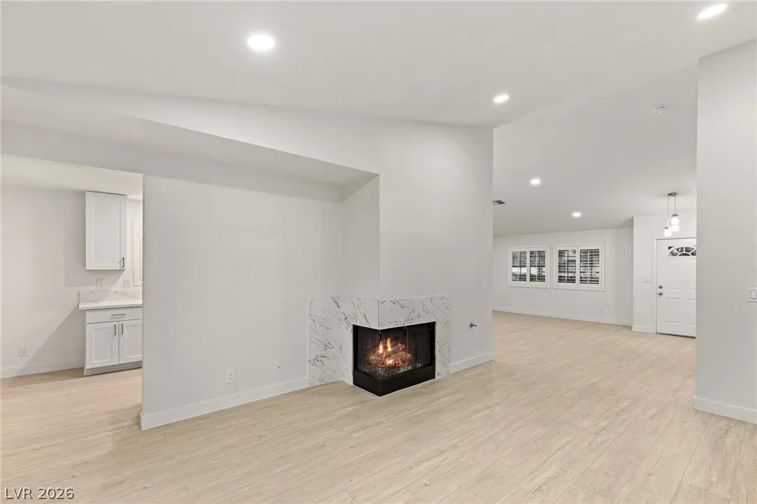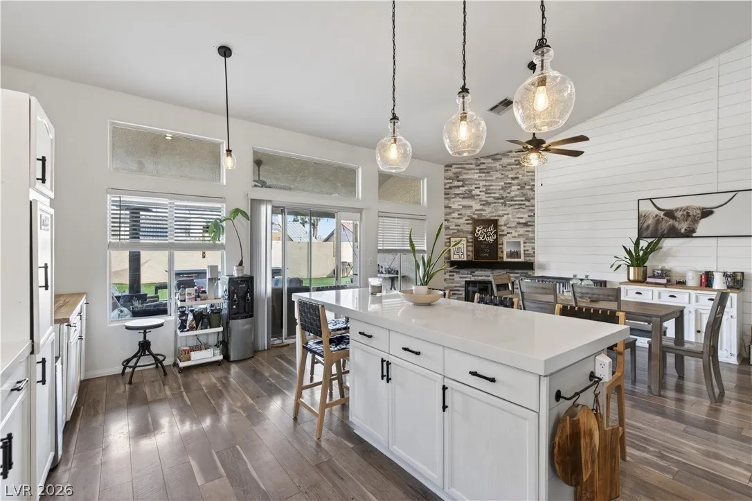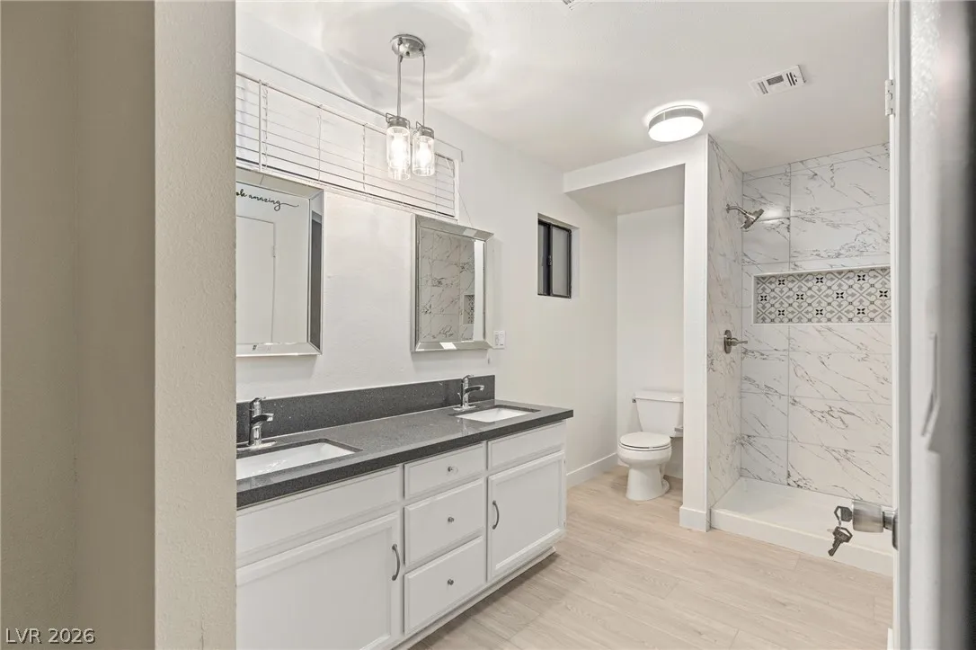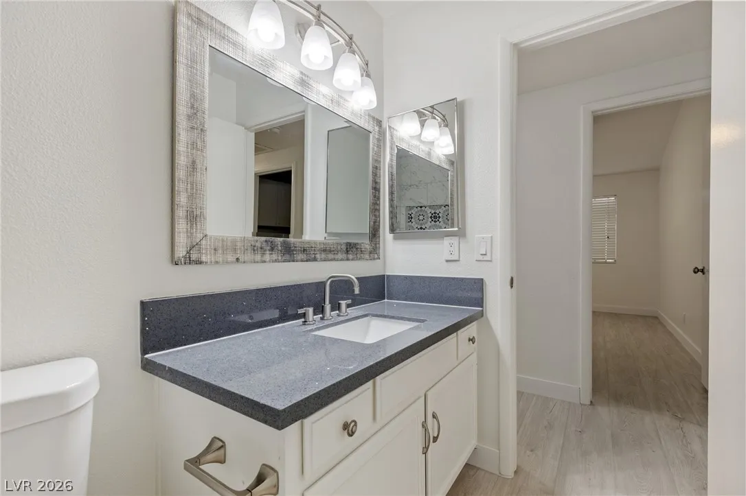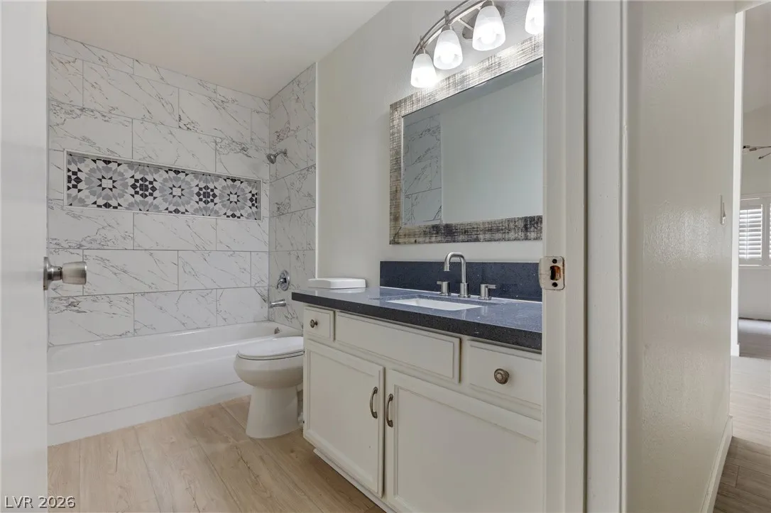 Welcome to 373 Santali Ct, a fully remodeled 3 bed 2 bath single-story home in the desirable Green Valley area of Henderson. This move-in ready residence features newer luxury vinyl plank flooring throughout, high vaulted ceilings and a bright, open layout enhanced by newer light fixtures and ceiling fans. The upgraded kitchen showcases quartz countertops, shaker cabinets, and black stainless steel appliances, blending modern style with everyday functionality. Both bathrooms have been fully renovated with matching quartz counters, updated vanities, and contemporary finishes for a cohesive, upscale feel. The primary bedroom is spacious with a large walk-in custom closet, double sinks in the bath and a newer tiled shower. A 2-car garage and quiet cul-de-sac location add convenience and privacy. Close to schools, parks, shopping, dining, and freeway access, this home offers comfort, style, and a prime Henderson location—all with no HOA.