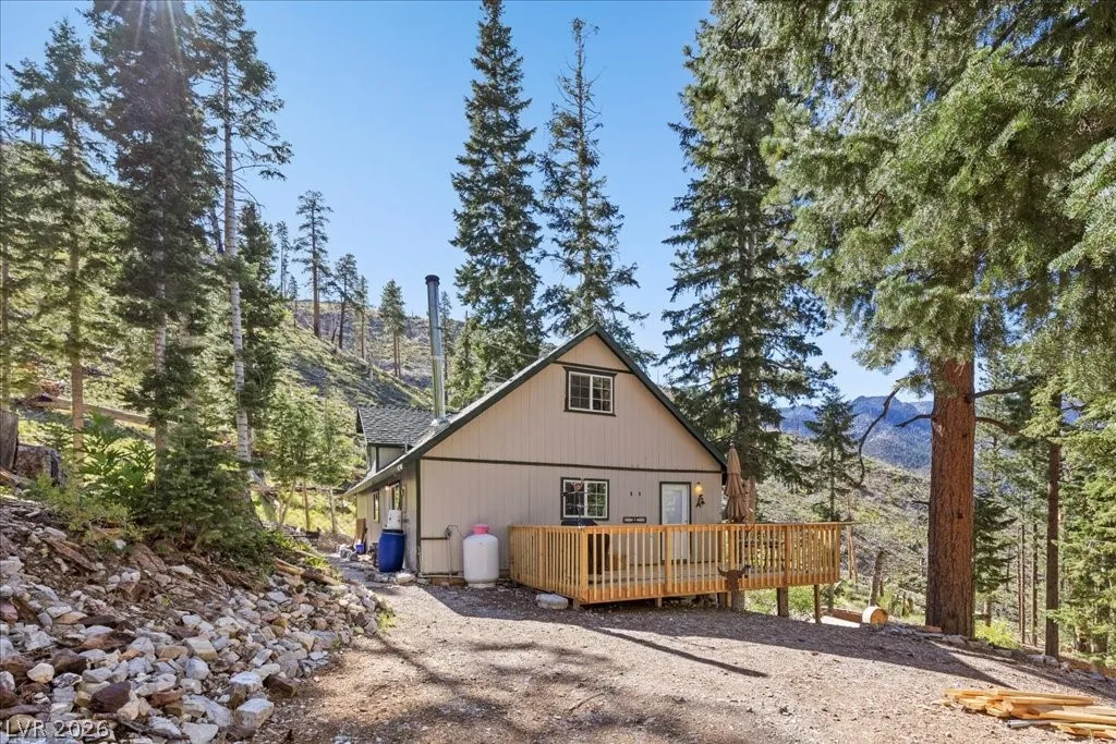 Beautifully restored + surrounded by towering pines, this home invites you to slow down + stay awhile. Newly finished with a nod to its vintage roots. Kitchen w/butcher block countertops, stainless steel apron sink + breakfast bar. Classic wainscoting w/authentic original deck boards in dining space. Custom window treatments throughout. Bathroom downstairs w/shower + second half bath upstairs. Washer/dryer combo unit. Whole-home water filtration system w/four-stage filters + UV light. (4) water holding tanks, 1,100-gallons total. Water-sealed deck, outdoor shower + stunning views. Endless opportunities for outdoor adventure. Self-sufficient, off-the-grid location w/power from solar, batteries, generator + inverter. Starlink. Furnished (excluding sentimental items). Seller financing (OWC) is available.**U.S. FOREST SERVICE OWNS THE LAND. CASH OR OWC PURCHASE ONLY. BUYER PURCHASES STRUCTURE ONLY AND PAYS AN ANNUAL FEE TO USFS FOR SPECIAL USE PERMIT OF APRX $6,056. PROPERTY SOLD AS-IS.**