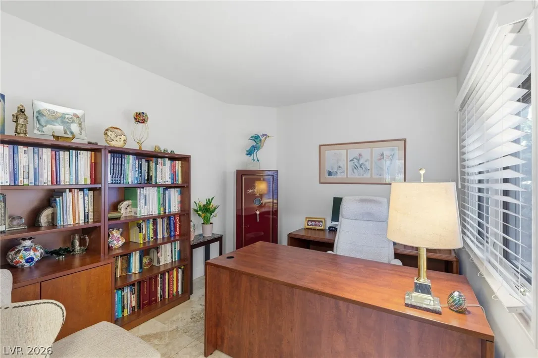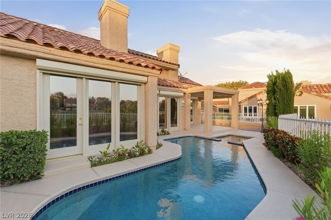 The home features a flexible layout with the potential to be easily converted into a 3-bedroom floor plan, adding exceptional versatility for guests or additional living space. Enjoy added peace of mind with brand-new AC, Rolladen security shutters, and newly refreshed landscaping that enhances both curb appeal and privacy. The detailed courtyard and finished garage with custom storage complete the home’s thoughtful design. A rare opportunity to enjoy scenic views, privacy, and resort-style living in one of Las Vegas’ most sought-after golf communities.