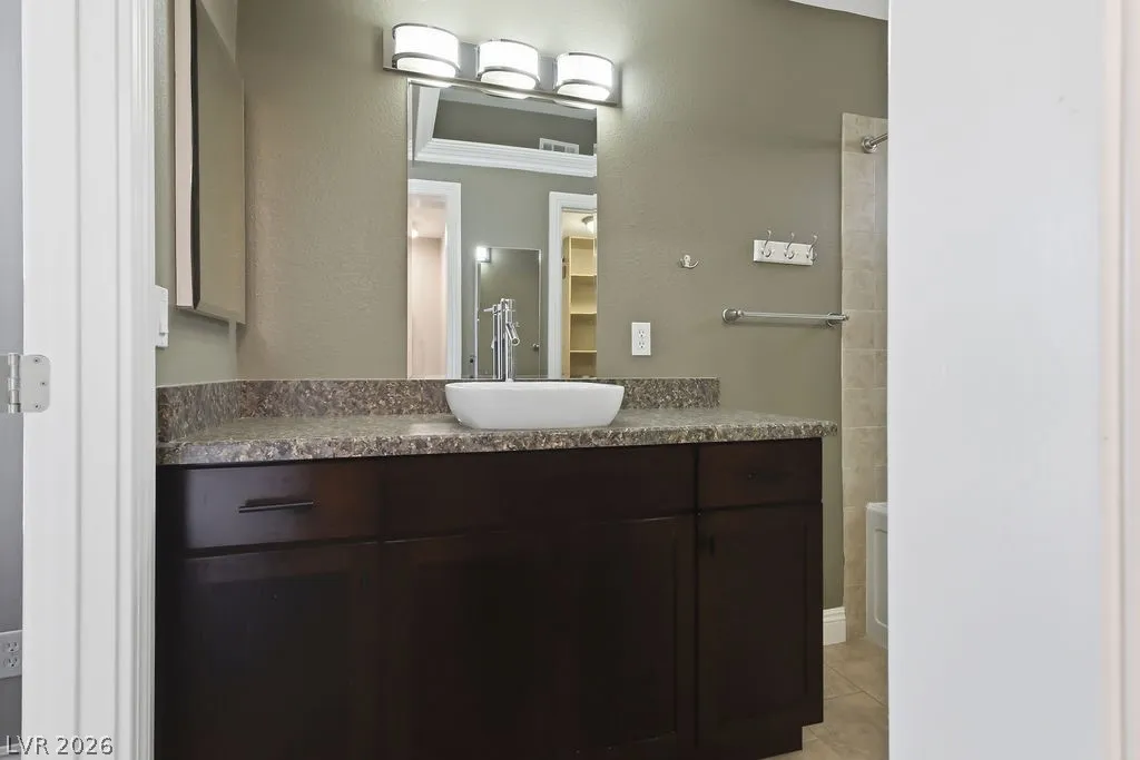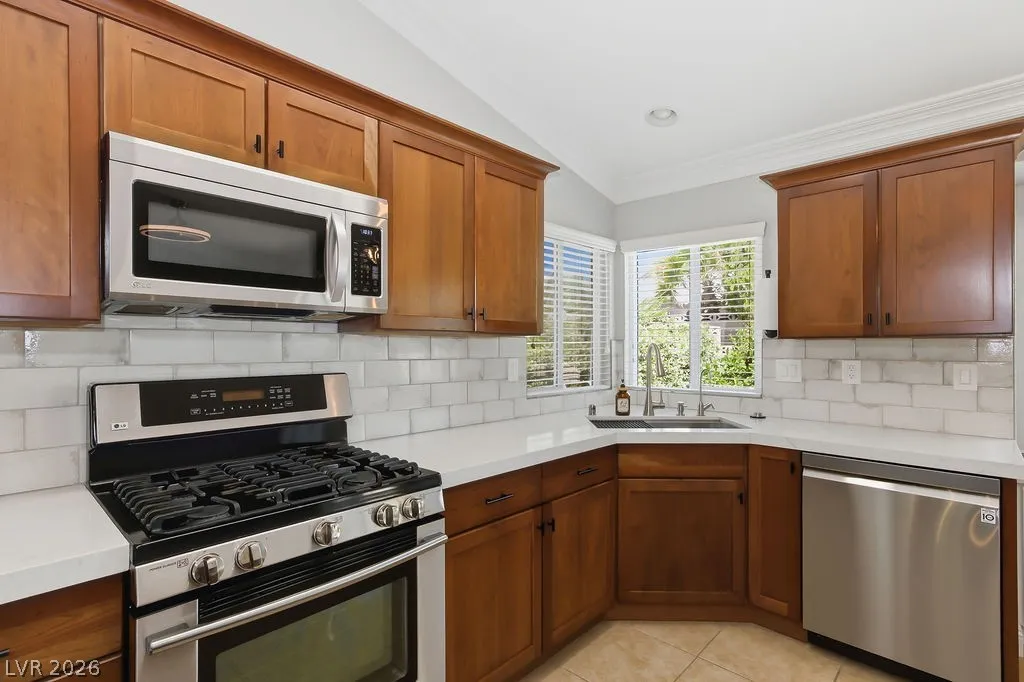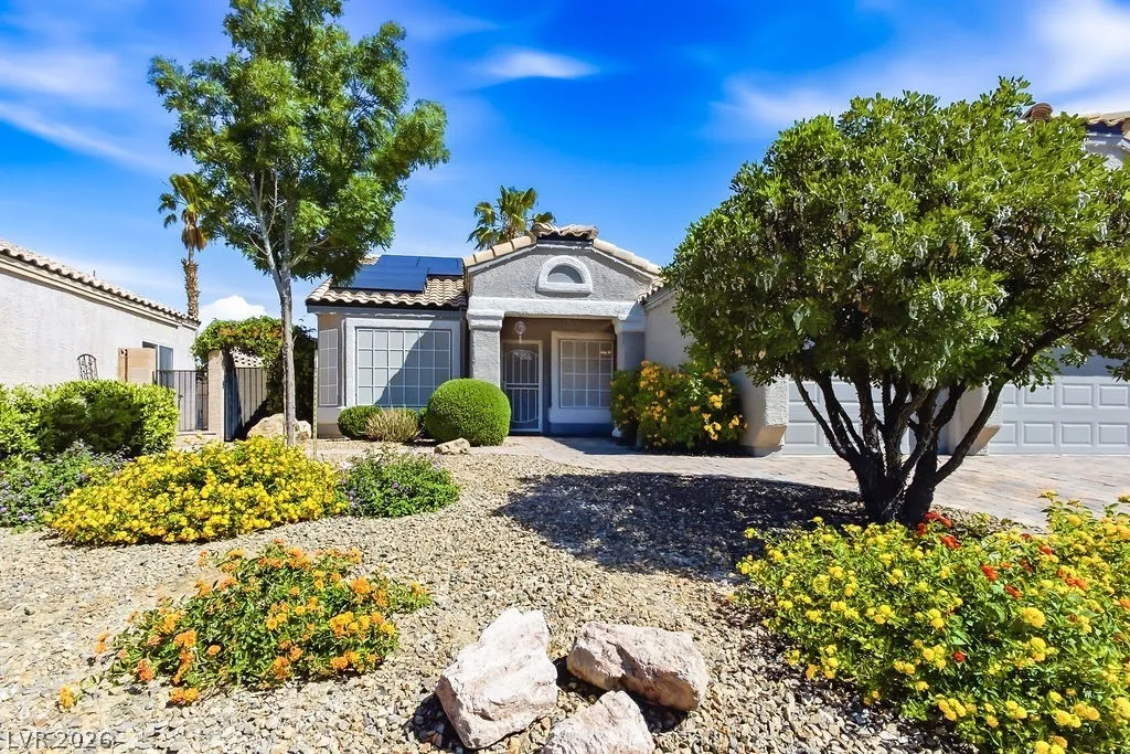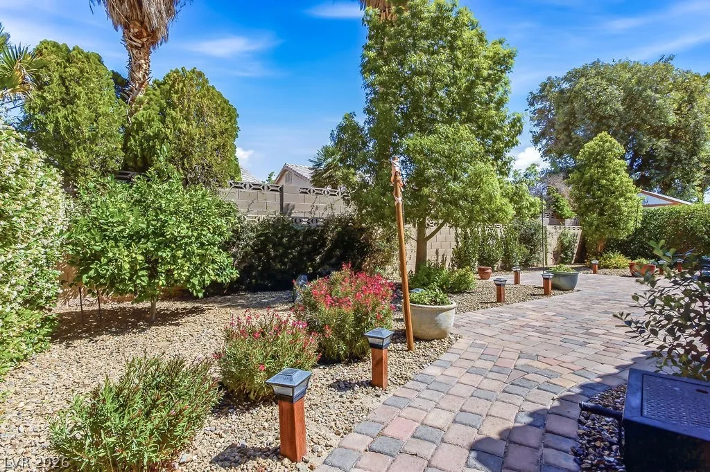 Welcome Home to Warmth & Charm! You’ll feel the love the moment you arrive at this gorgeous single-story home. Meticulously cared for,it greets you with a brick paver entryway, and landscaping that surrounds the property—creating your own private oasis in the heart of the Las Vegas Valley. Inside, upgraded luxury vinyl plank and tile flooring that flows throughout for a warm, inviting feel. The spacious kitchen features Quartz counters, stainless steel appliances, ample counter space, generous storage, and a large dining area perfect for entertaining. Expansive Primary Bedroom w/ W/I closet. Updated bathrooms offer granite counters, stylish shower surrounds, and upgraded fixtures. Outside, the upgraded wrap-around backyard provides plenty of usable space to relax, play, or gather under the Nevada sun. Newer water heater, main water line, dishwasher. AC well-maintained. Prime location. Close to the expressway, airport, Strip, shopping, and dining