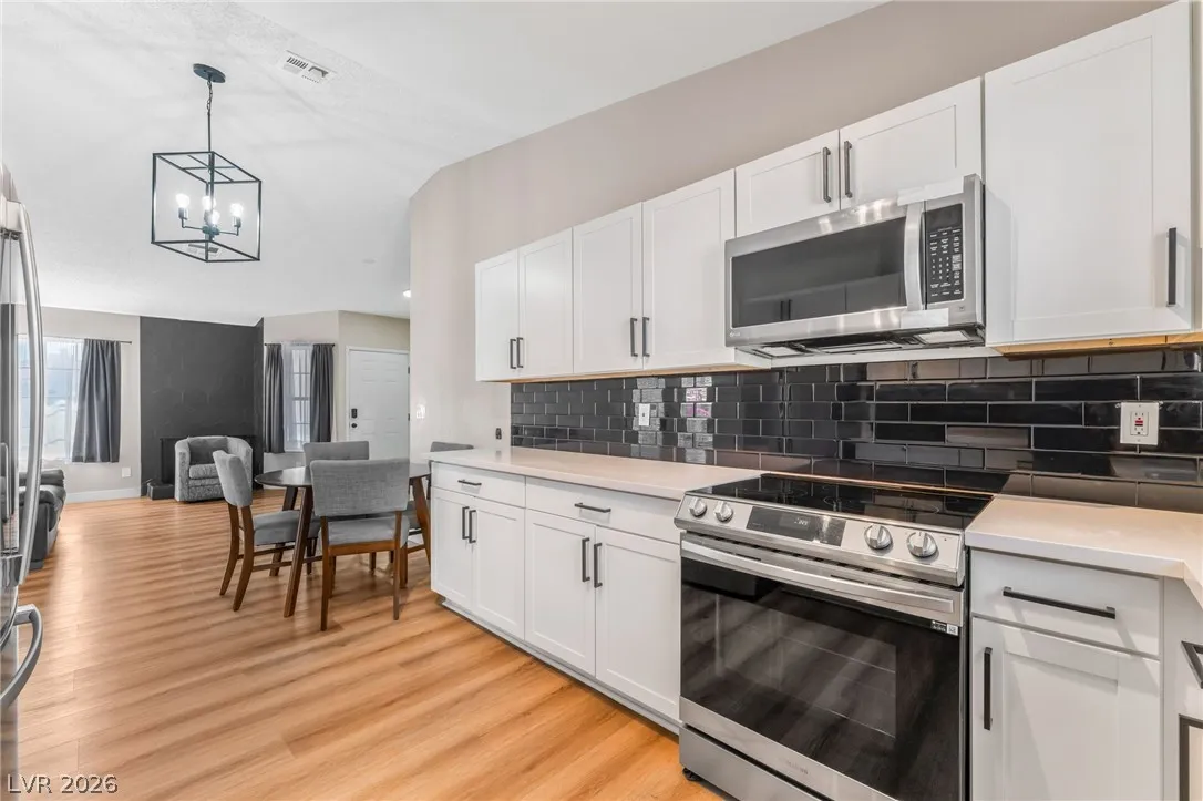 Fully renovated single story home with a clean modern feel throughout. The kitchen features quartz countertops, stainless steel appliances and sleek black finishes. Enjoy a wood burning fireplace, brand New plumbing throughout, fresh paint and durable vinyl flooring. Both bathrooms are fully remodeled and with spacious backyard low maintenance artificial grass perfect for relaxing or entertaining.