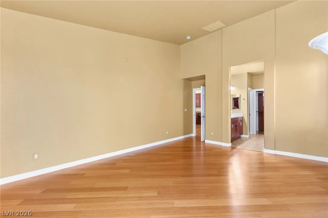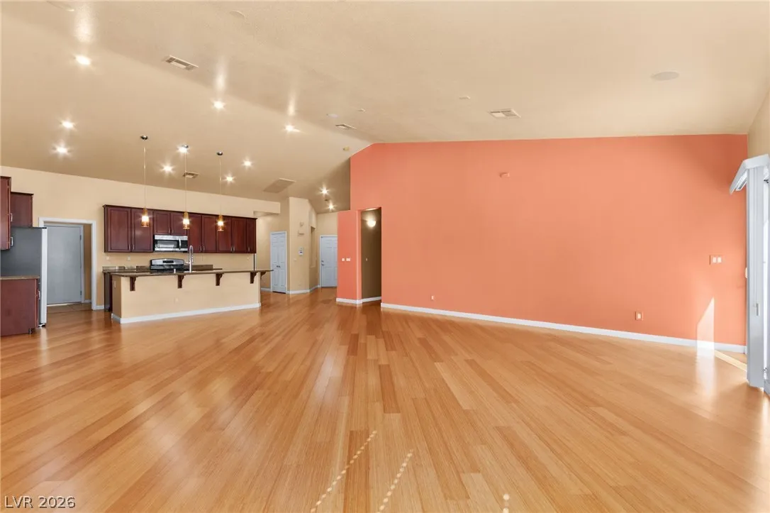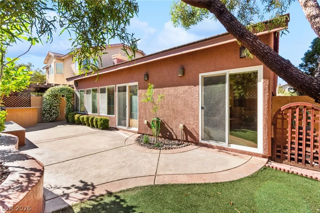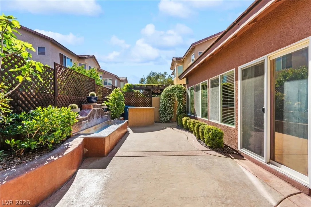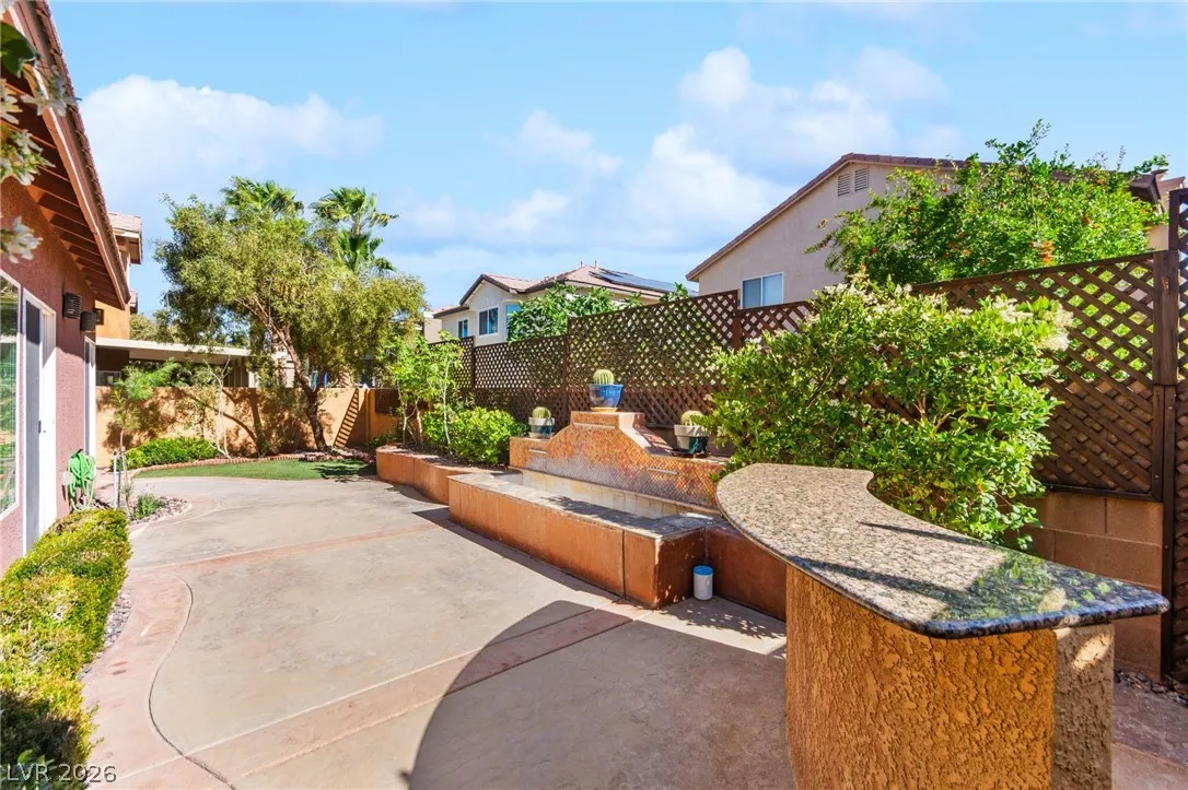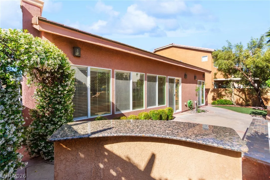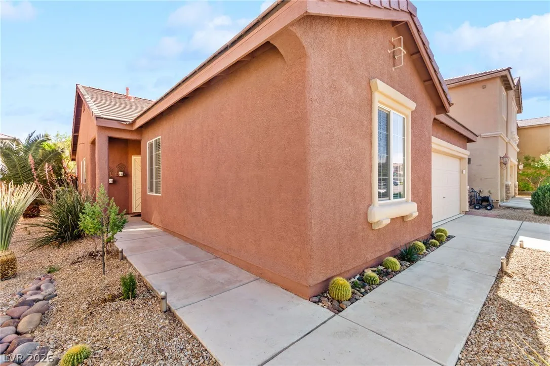 Single-story home with an attached two-car garage, offering 3 bedrooms and an open-concept layout with vaulted ceilings. The spacious living room features a fireplace and flows seamlessly into the kitchen, which includes a center island and granite countertops. The primary suite provides direct access to the backyard, creating a comfortable indoor-outdoor living experience. Ideal layout with open common areas and functional design throughout.