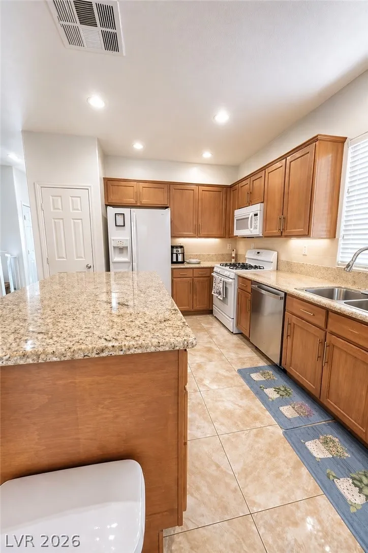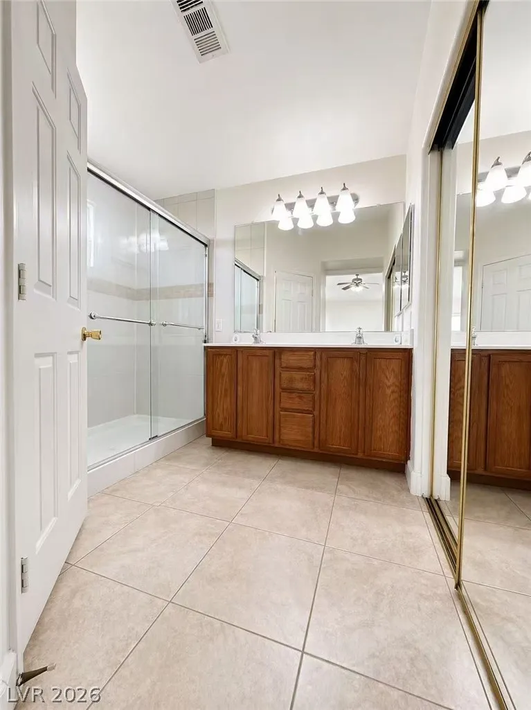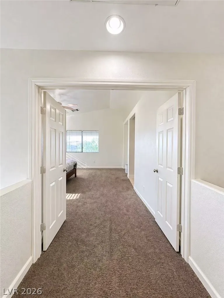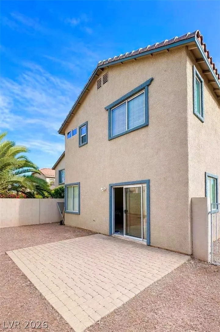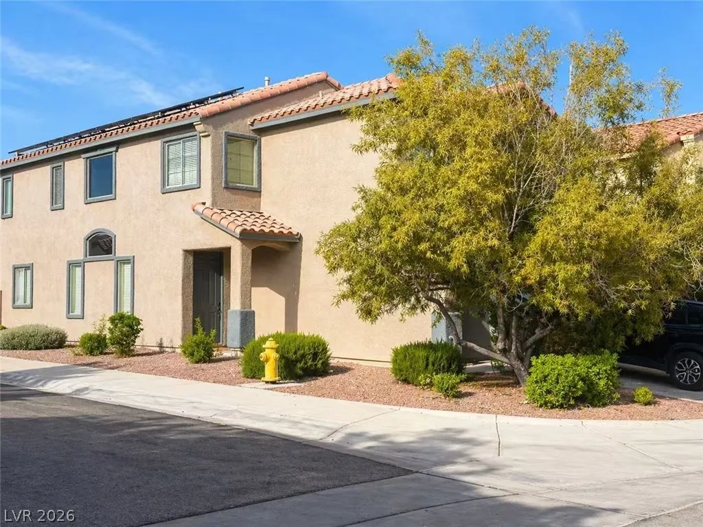 Stunning corner lot 2-story house with 5 bedrooms, 3 bathrooms, and a 2-car garage in Southern Highlands. The entry welcomes you with soaring high ceilings, upper skylight-style windows, ceiling fans, and tile flooring throughout the entire downstairs, plus a bedroom and shower bathroom provide added convenience for guests. Sunny kitchen offers plenty of cabinets and a center island, creating a functional and open space. Upgraded primary bedroom features French doors, bathroom with dual sinks and a large custom closet. Enjoy a huge backyard and Front lawn with mature trees. Conveniently located near parks, schools, shopping… This energy-efficient home also includes paid-off solar panels and dual-pane windows.