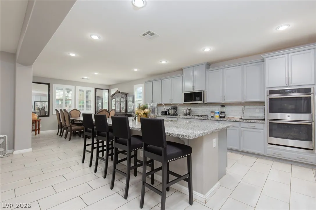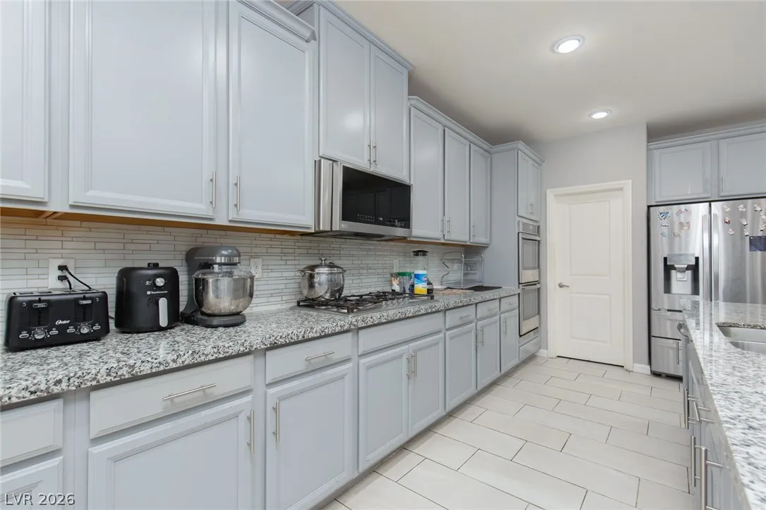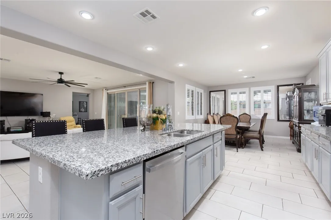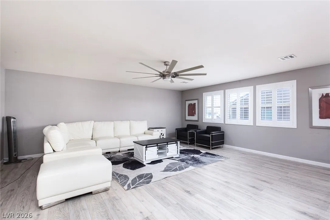 Discover the perfect blend of space, comfort, and flexibility in this beautifully appointed North Las Vegas home. Featuring 5 bedrooms, a spacious upstairs loft, and a downstairs den currently used as a 6th bedroom, this home offers a versatile layout ideal for growing households, guests, or multigenerational living. The open-concept design feels bright and inviting, perfect for both everyday living and entertaining. Step outside to an incredible backyard with a built-in BBQ, covered patio, and plenty of room to relax or gather year-round. Conveniently located near shopping, dining, and freeway access, this move-in-ready home includes all appliances for a seamless transition