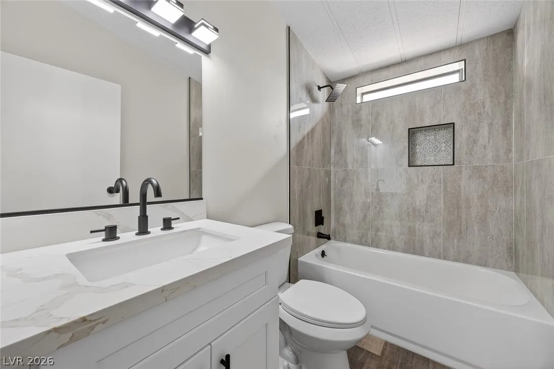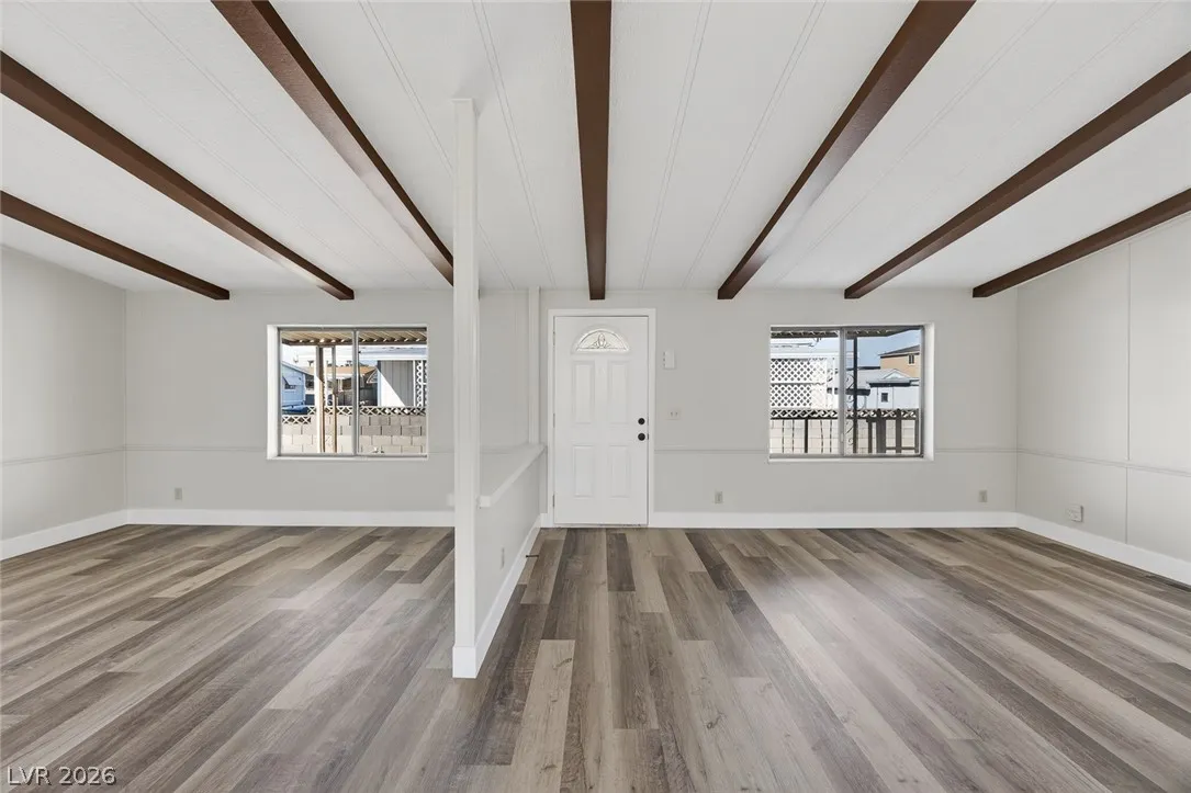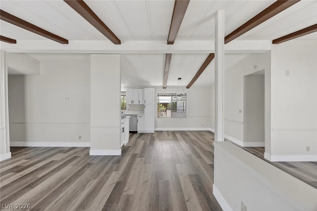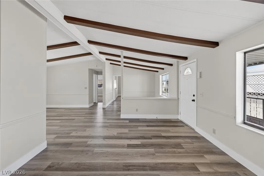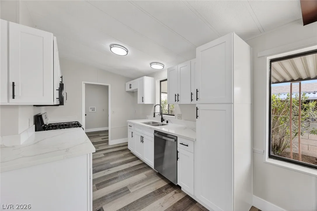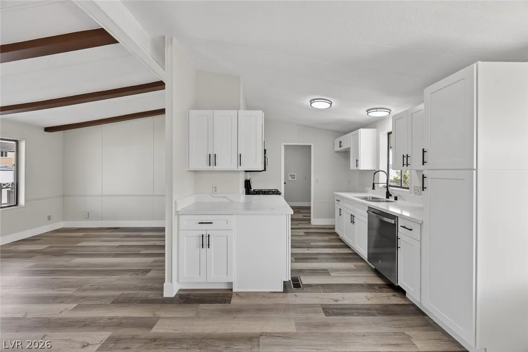 Welcome to this stunningly remodeled manufactured home, converted to real property. This home features NEW luxury vinyl flooring throughout the spacious living areas & all wet zones, combining style and functionality. Step into the HIGHLY upgraded kitchen, where you’ll find NEW Shaker cabinets, NEW stainless steel appliances, & beautiful quartz counter-tops that make cooking a delight! The stylish faux wood ceiling accents add a touch of elegance, complemented by designer fixtures throughout the home. Both the primary and secondary bedrooms are generously sized and boast NEW upgraded carpet, ensuring comfort and warmth. The bathrooms are a true highlight, featuring brand NEW vanities, NEW quartz counters, & custom tile work that adds a spa-like feel. Freshly painted inside & out, this home is move-in ready. The new low-maintenance desert landscaping enhances curb appeal while providing easy upkeep. Don’t miss the opportunity to make this beautifully transformed space your own!