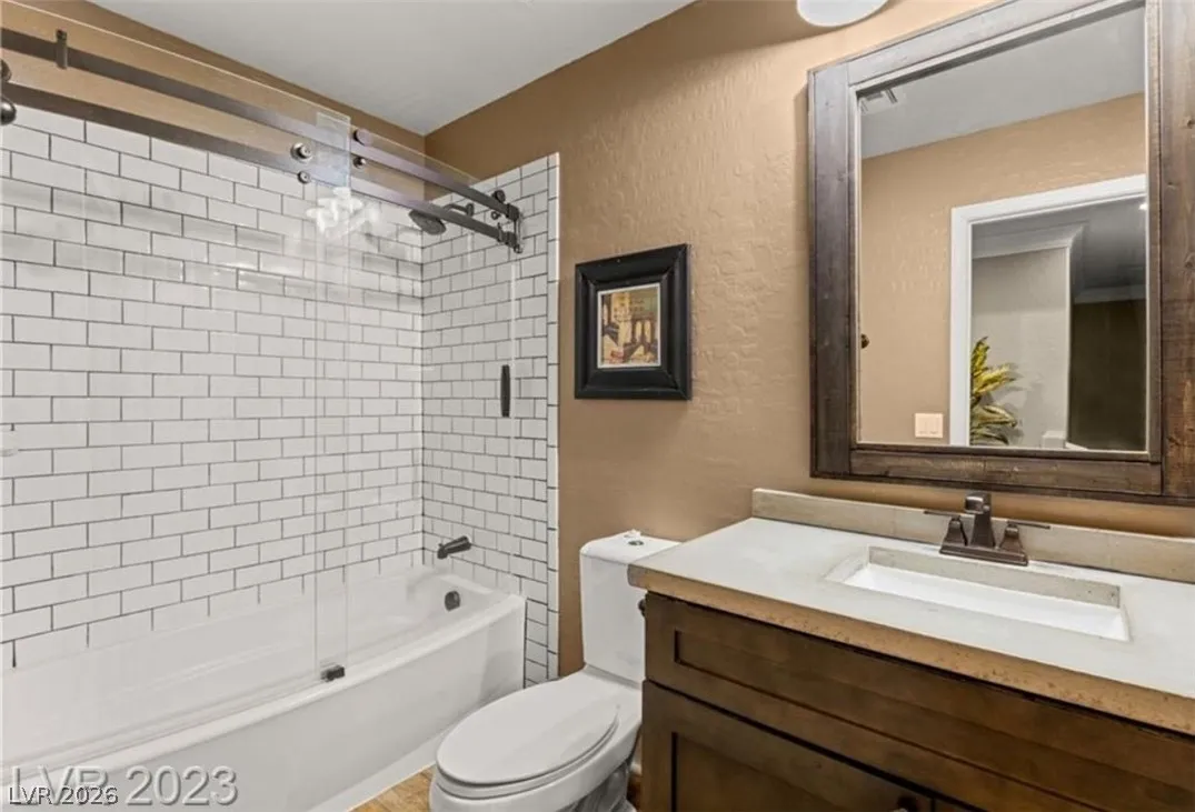 The upstairs primary suite includes a private balcony overlooking the pool, creating a peaceful retreat. The custom primary bathroom offers a spacious walk-in shower with dual shower heads, dual sinks, and a large walk-in closet. Every bathroom is equipped with a bidet for added comfort. Located near the gorgeous Mountains Edge Park, where you’ll enjoy bike trails, playgrounds, hiking, a dog park, shopping, and more—all just minutes from the 15 and 215 freeways. Perfect for temporary stays or corporate rentals—just bring your luggage! Lease terms available 1-3 months, 3-6.