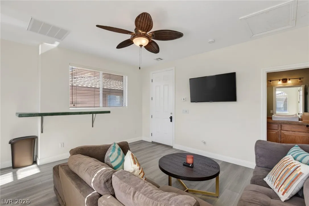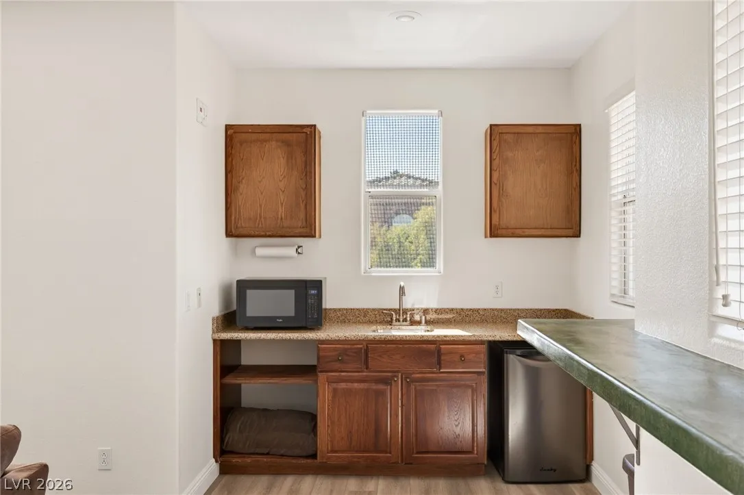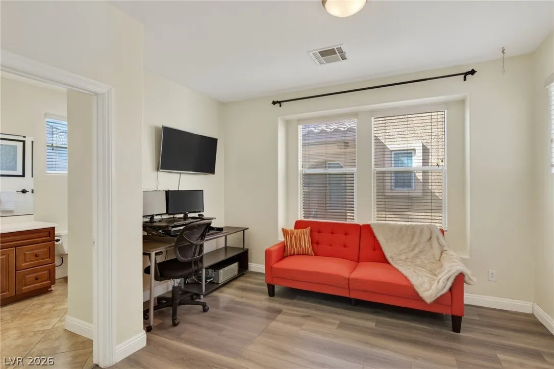 Beautiful Tuscan-inspired single-story home featuring 3 bedrooms and 3 bathrooms in the main residence, plus a private 514 sq ft upstairs casita with a 4th bedroom, full bath, living room, kitchenette, balcony, and separate entrance—ideal for guests, multigenerational living, or a private retreat. The open-concept layout offers a bright, spacious kitchen with a large center island that flows seamlessly into the dining and living areas, perfect for everyday living and entertaining. Enjoy a low-maintenance backyard with mature trees and a charming interior courtyard for additional outdoor space. Soothing sage tones add warmth throughout the main living areas. The generously sized primary suite includes backyard access, a spa-like bath with double sinks, separate tub and shower, and a custom walk-in closet. Tuscany Community is guard gated, with huge recreational facility with fitness center, basketball, squash and tennis courts, pool/spa, golf course, restaurant, parks and playgrounds.