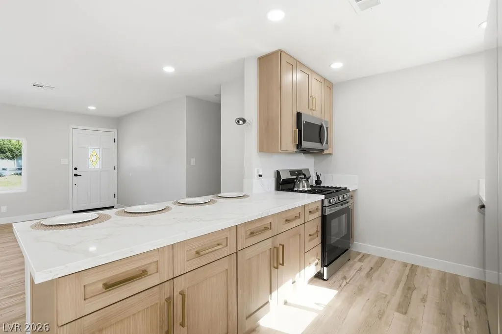 Beautifully remodeled home featuring 3 bedrooms and 2 bathrooms, offering modern comfort and style. This move-in ready property includes a spacious living room perfect for relaxing or entertaining guests. The home boasts all new kitchen cabinets and includes brand new stainless steel appliances, designed for both functionality and a fresh, contemporary look. Elegant luxury vinyl flooring runs throughout the home, providing durability and easy maintenance. All three bedrooms feature soft new carpet for added comfort. Both bathrooms have been fully updated with modern finishes adding style and functionality. Outside, you’ll find a covered 2-car carport along with additional RV parking, offering plenty of space for vehicles and recreational needs. The large backyard provides endless possibilities ideal for outdoor gatherings, gardening, or creating your own private retreat. This updated home combines convenience, space, and modern upgrades ready for its new owners to enjoy!