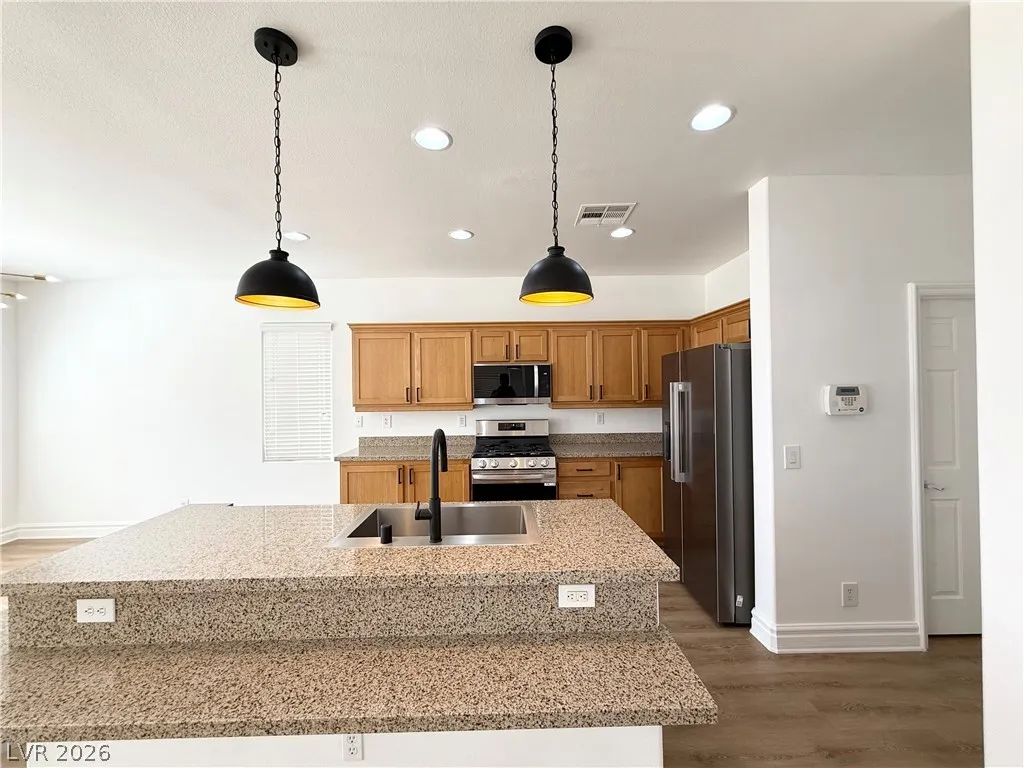 Truly beautiful, updated, move in ready, sitting on larger, pool sized lot, best valued and hard to find 4 bedrooms with no neighbors behind, two story home located in resort style living, guard gated Rhodes Ranch. Complete with 18 holes championship golf course, country club amenities and updated club house. This stunning home has brand new desert landscaping, painted garage door, stainless steel appliances, toilets, sinks, carpet, 6 inch baseboards thru out, new blinds and all new Luxury Vinyl Plank thru out. This wonderful home has been freshly painted for the exterior and interior. It is a must see to appreciate, priced well for a quick sell.