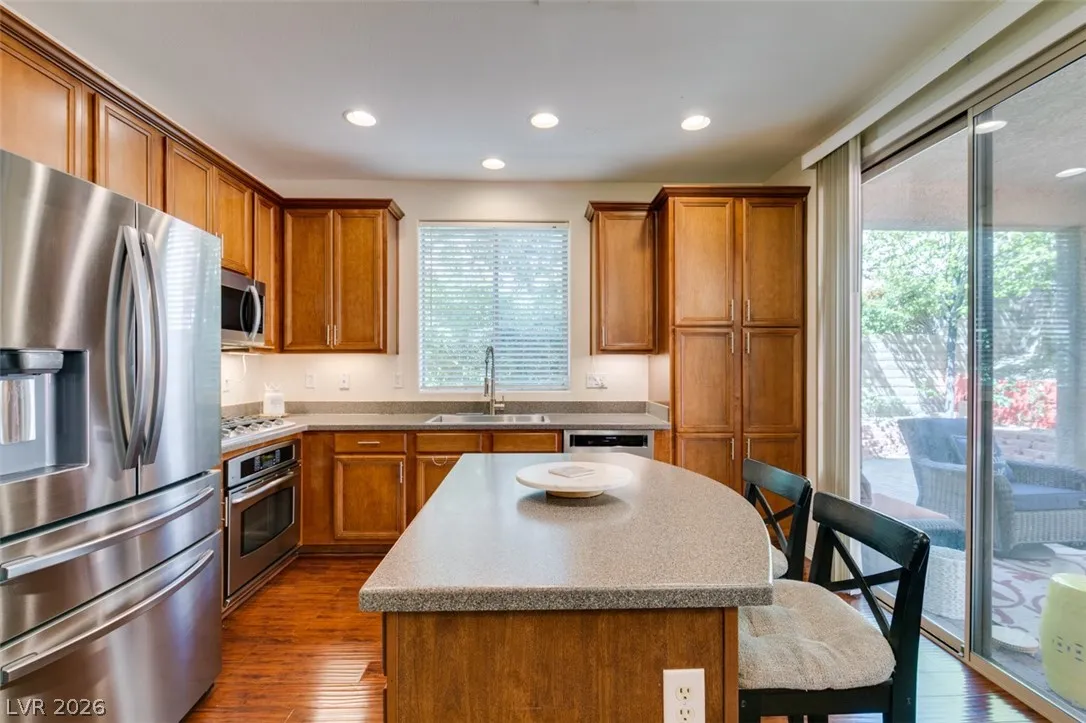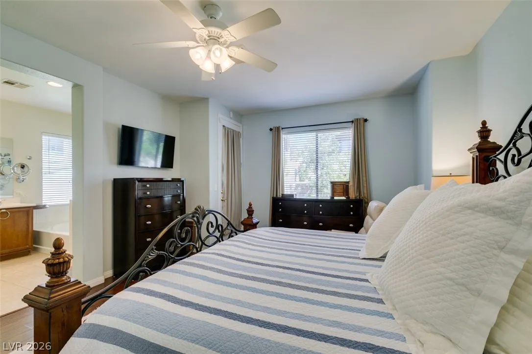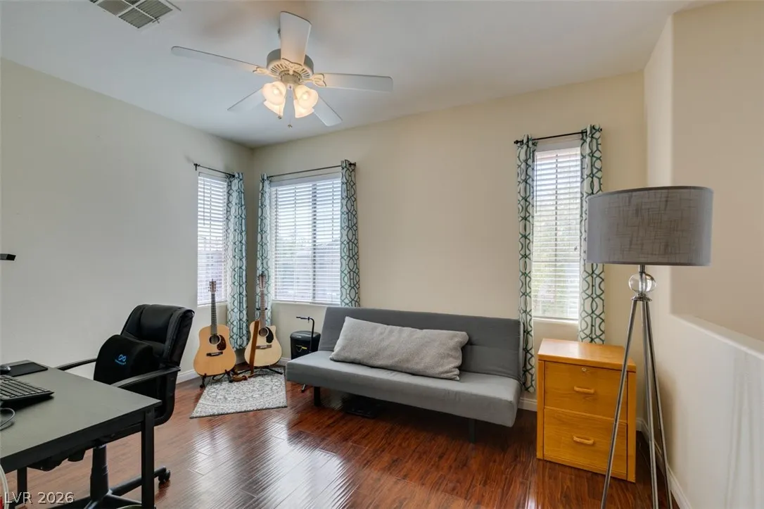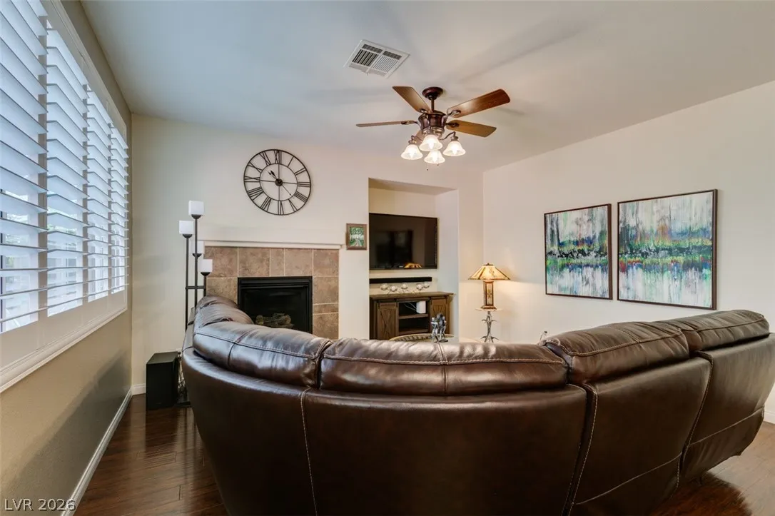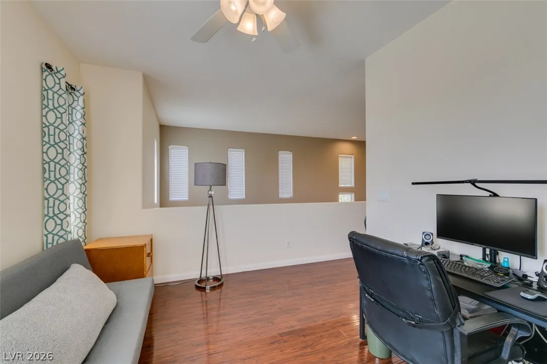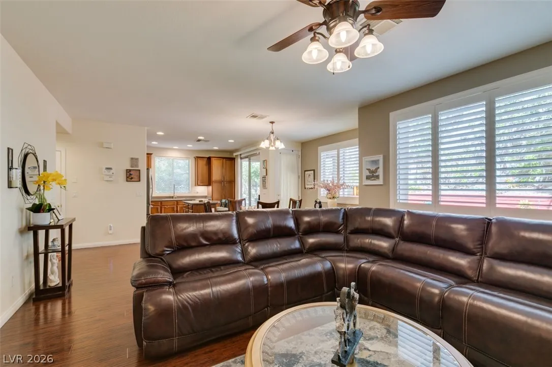 Welcome to your next home, 11832 Arenoso Drive in the highly coveted and sought after Master Plan Community of Summerlin. Step inside to a home with rich hardwood floors (no LVP or laminate), high entry ceilings, formal living room (can serve as a flex space/office), beautiful Switchback Stairs with landing, and a welcoming family room area. The family room is inclusive of the kitchen making evenings cozy and inclusive so you are part of the discussion while preparing meals; excellent for entertaining. The family room is bathed with indirect, natural light since the home is oriented North to South and the gorgeous backyard is visible from the family room, dining room, and kitchen. Upstairs features a flexible loft space, large bedrooms with a shared full bathroom and a very large primary bedroom with a wonderful separate shower and soaking tub. The backyard is a paradise of mature flowers, bushes, and trees attracting beautiful desert hummingbirds. Enjoy the nearby Downtown Summerlin!