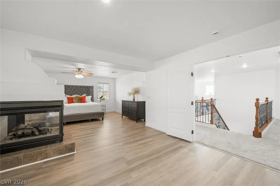 Upstairs offers a spacious loft and an oversized primary suite with fireplace, sitting area, two walk-in closets, dual sinks, soaking tub, and separate shower.