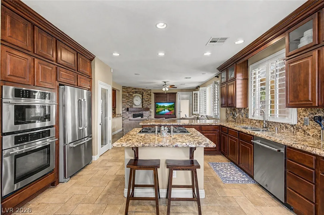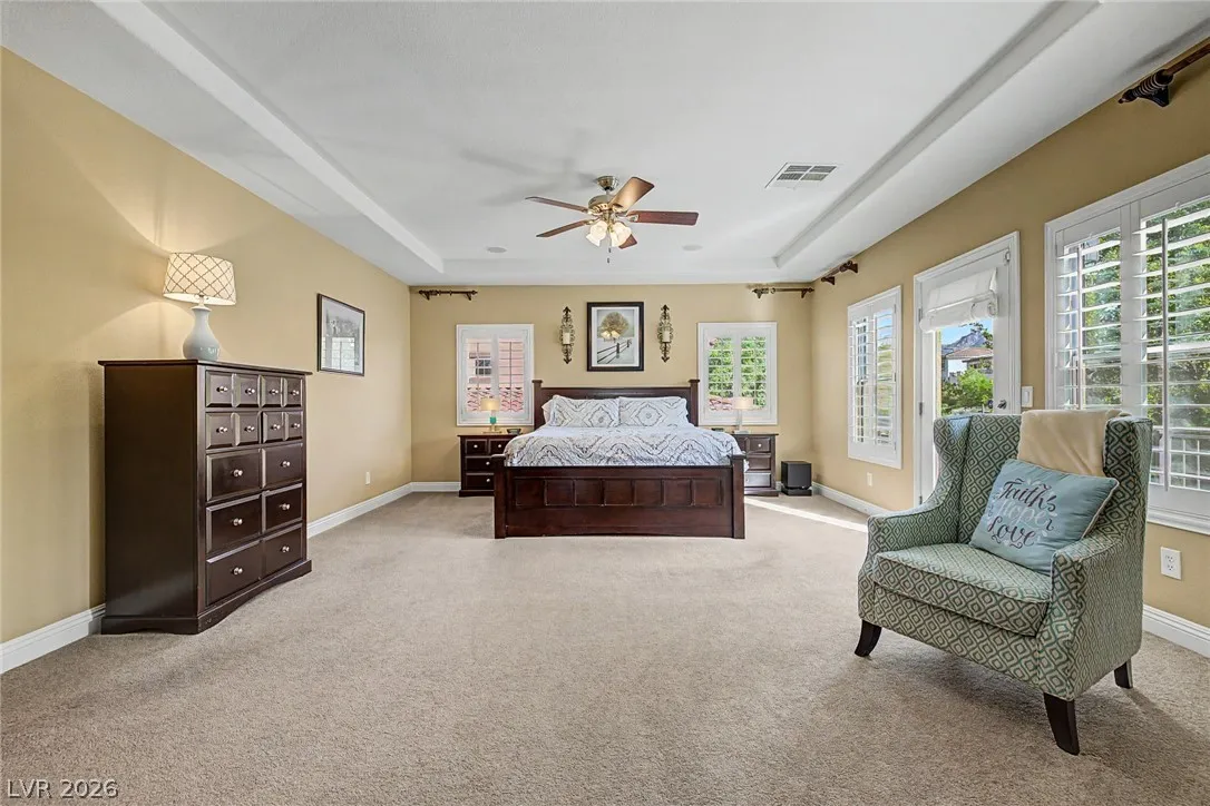 MODIVATED SELLERS! Welcome to 12240 Montura Rosa Place, 4bed, 4 bath, +Den +Loft, 3455 sqft home in the highly desirable Summerlin, inside the private/gated Granada Palomar. Former model home sits on PREMIUM corner lot w/ only 1 neighboring property, no rear neighbors, & a park across the street. Home is in immaculate condition & has been beautifully maintained. The backyard, a true oasis w/ custom pool 2021 built w/ waterslide & waterfall, creating resort-style setting that feels like a private escape. Upgrades: New water heater, new home water filtration system, & new garage door opener/springs. ADT security system on all doors, glass break sensors, 5 exterior Nest cameras for added peace of mind. Front balcony has STUNNING Red Rock mountain views, 2nd bedroom offers a peek of the Las Vegas Strip. Homes like this do not come up often in this location or $$! W/ its combo of privacy, condition, upgrades, & views, this is a standout opportunity! Giving $5,000 paint credit – Primary bath