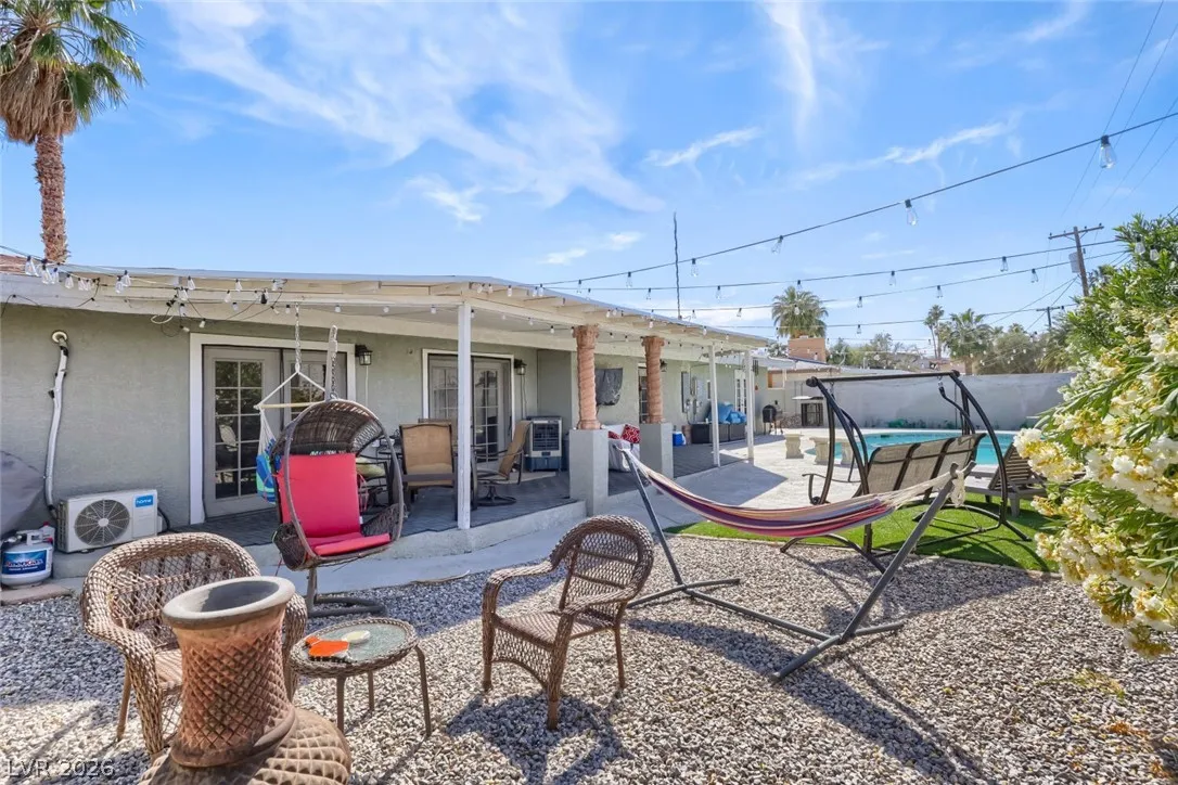 Fantastic, competitively priced, remodeled Paradise Palms home featuring 4 bedrooms and 2 bathrooms. Primary retreat is separate from the other bedrooms and offers bath with separate tub and shower. Massive walk in closet with attached sitting room. Bedroom has access out to the back yard pool area. One of the other bedrooms also offers access to the back yard. Two car attached garage, solar on roof that is leased for buyer to take over. The backyard is stunning with crystal clear pool, huge covered patio with plenty of space to entertain. Want a break from the pool area, off the dining room is yet another patio for you to sip your morning coffee.