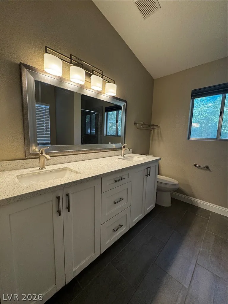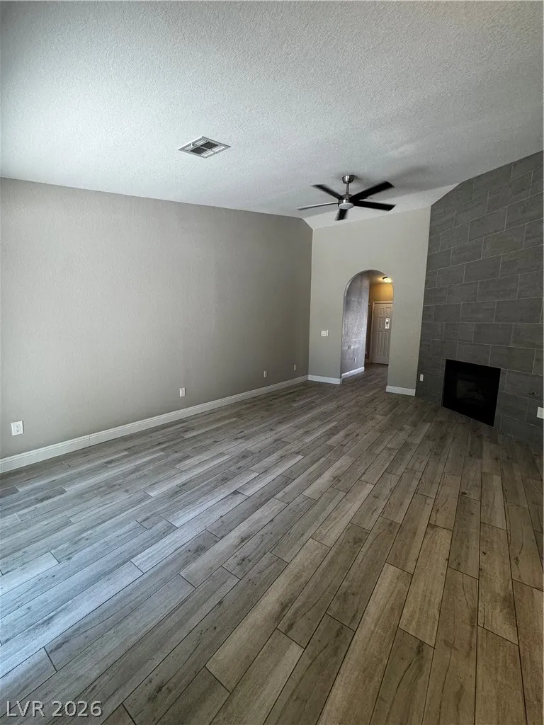 This single-story 3-bedroom home is located in the Smoke Ranch subdivision. Features desert landscaping out front, a great-sized lot, and rare 3-car garage. Inside offers an open floor plan with vaulted ceilings, modern tiled fireplace, wood-look flooring, and an upgraded kitchen with white shaker cabinets, quartz countertops, and stainless steel appliances. Spacious private backyard with mature landscaping and room to entertain. Move-in ready!