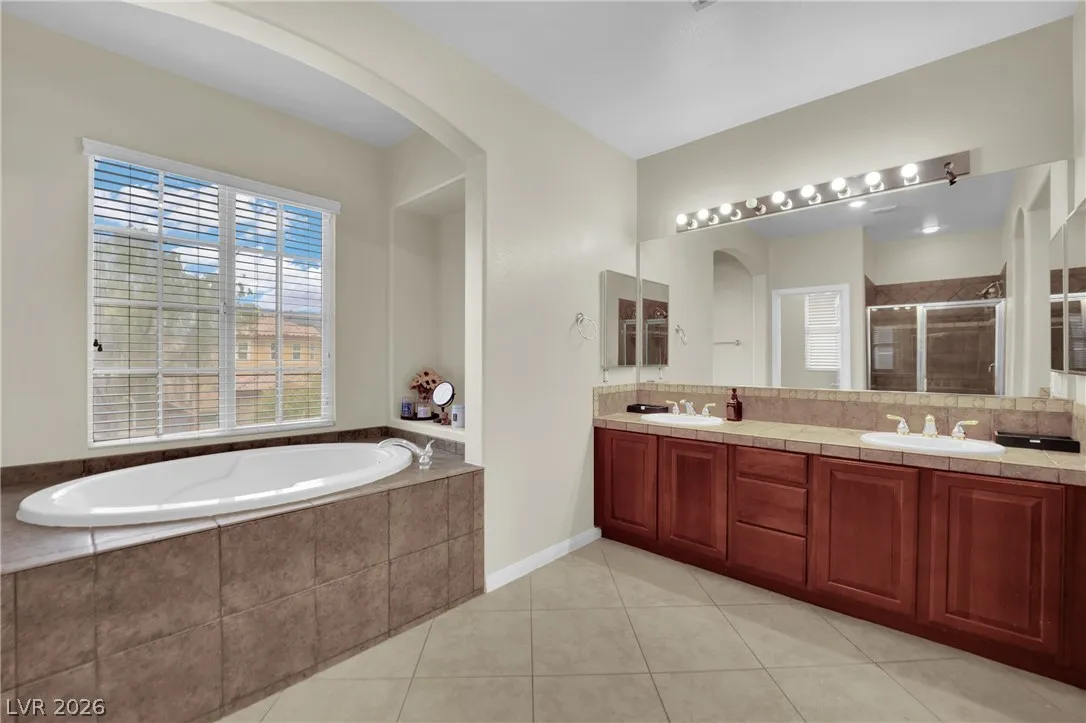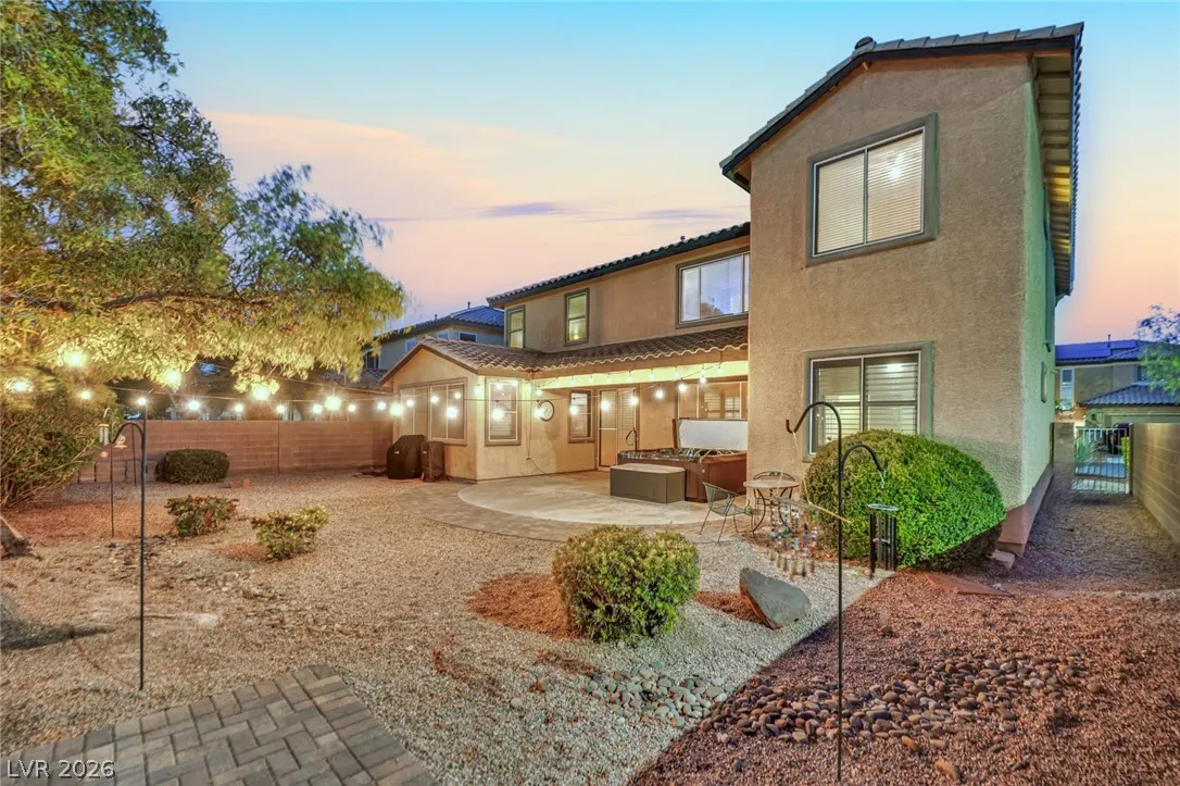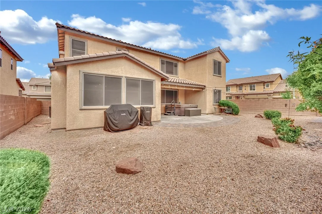 Gem Located in a gated community. This spacious home features 5 bedrooms, 4 bathrooms, a den, and a large loft—ideal for flexible living and entertaining. The open layout offers multiple living areas with great natural light throughout. The den is perfect for a home office, while the loft provides additional space for a media room, game room, or lounge. The primary suite offers a private retreat with double sinks, a separate shower and tub, a dedicated makeup table, and a walk-in closet. Step outside to a large backyard with an above-ground spa under a covered patio, perfect for relaxing or entertaining. Complete with a 3-car garage, this home combines space, comfort, and versatility. Enjoy a well-designed floor plan that balances everyday living with entertaining, offering room to grow and make it your own while enjoying the added privacy and security of gated community living.