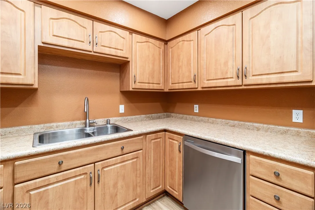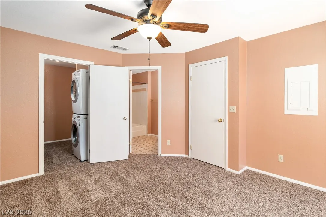 DISCOVER RELAXED DESERT LIVING IN THE GATED LAS PALMAS COMMUNITY! This upstairs 2 bed, 2 bath condo features a well-planned split-bedroom layout, with each bedroom offering a walk-in closet, ceiling fan, and access to its own private covered balcony. One suite boasts a custom walk-in tiled shower, while the other includes a tub-shower combo for added convenience. The spacious living room showcases a tall vaulted ceiling and a charming fireplace, creating a comfortable and inviting atmosphere. Las Palmas Condominiums offers a beautifully maintained pool, spa, clubhouse, and lush common areas, all within a gated setting that provides peace of mind. Ideally situated across from the library and just minutes from shopping, the post office, the Colorado River, and Laughlin’s casinos. Enjoy it all with the added financial perk of NEVADA’S NO STATE INCOME TAX.