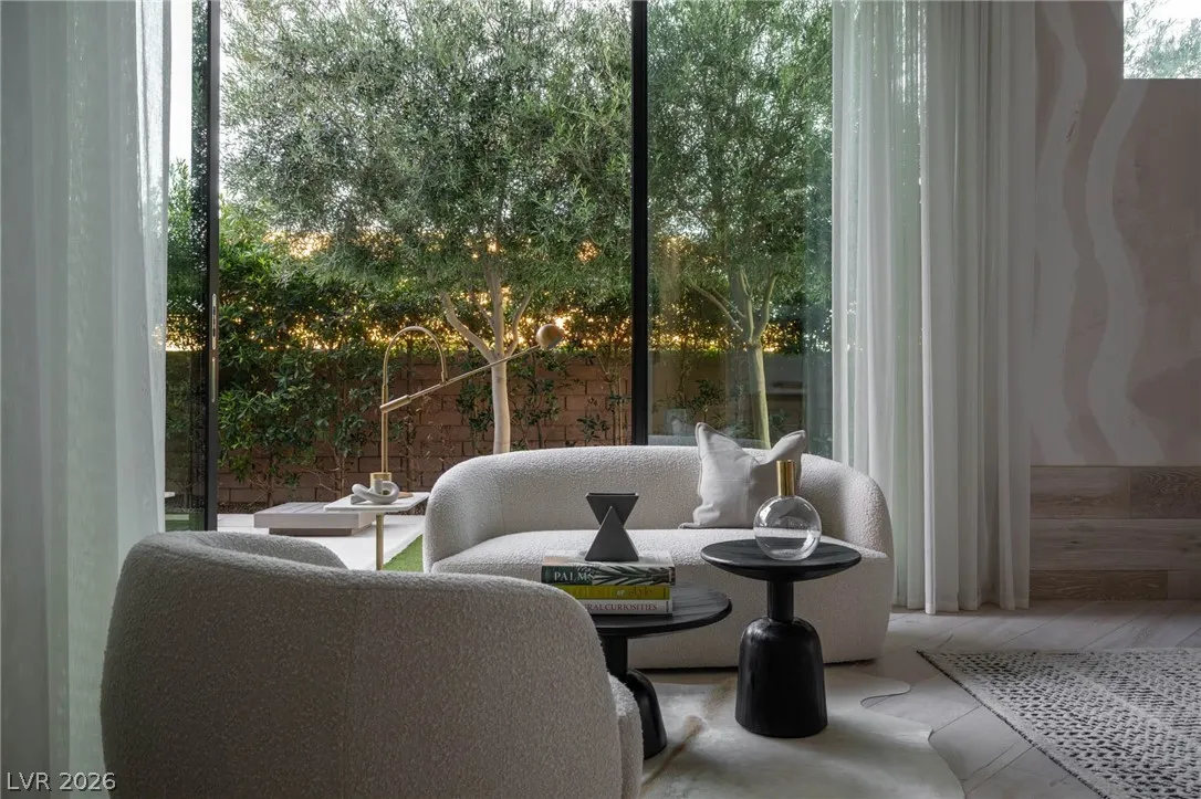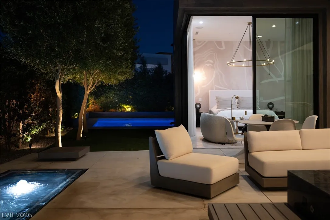 A desert modern estate blending clean architectural lines with warm Mediterranean-inspired design. Designed for both luxury and versatility, the home offers multiple interior and exterior lounge spaces ideal for entertaining, relaxing, and flexible everyday living. The chef’s kitchen features European oak flooring, dramatic black-and-white millwork, premium Wolf and Sub-Zero appliances, plus a large pantry/prep area. Pocketing glass doors create seamless indoor-outdoor flow throughout the main living spaces, complemented by a built-in bar with wine fridge, beverage center, and ice makers. Additional highlights include a dedicated golf simulator opening to a private sport court, a main-level primary suite with pocketing doors and spa-like bath, and 4 additional upstairs ensuite guest bedrooms surrounding a spacious loft/game lounge. The resort-style backyard features fire and water elements, pool, spa, outdoor kitchen, and multiple entertaining areas.