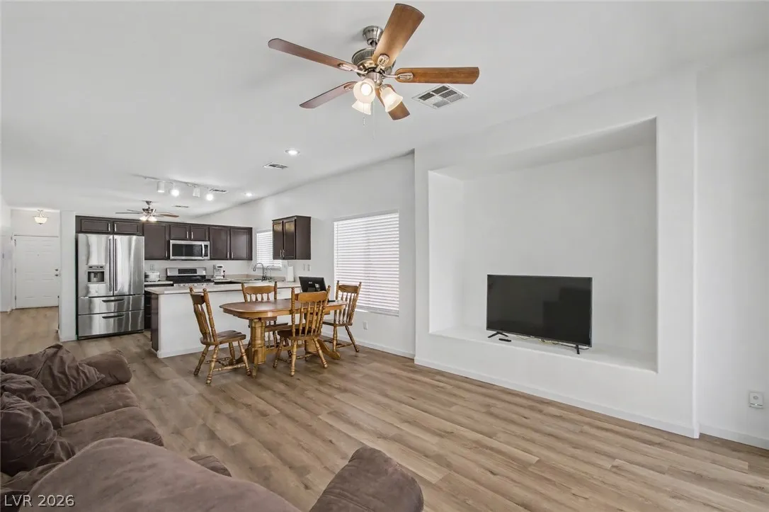MOVE IN READY! * PERFECT 1-STORY HOUSE WITH BRAND NEW FLOORS! NEW BASEBOARDS! * NO REAR NEIGHBORS * EXCELLENT LOCATION, MINUTES FROM MAJOR SHOPPING, I-215 * IMMACULATE, REMODELED: NEW FLOORING, PAINT, APPLIANCES * OPEN AIRY FLOOR PLAN WITH SUNNY KITCHEN, CEILING FANS THROUGHOUT * SEPARATE LIVING SPACES * PRIMARY BEDROOM WITH 2 CLOSETS * EASY CARE DESERT LANDSCAPING, COVERED PATIO WITH GROUND MOUNTED A/C (CARRIER), GAZEBO WITH SPA * ALL APPLIANCES, INCLUDING FREEZER IN GARAGE INCLUDED * SAVE MONEY WITH SOLAR! ABOUT $130/mo * SOLAR PANELS HAVE PIGEON GUARD * COMMUNITY PARK AND PLAY * COME AND SEE!