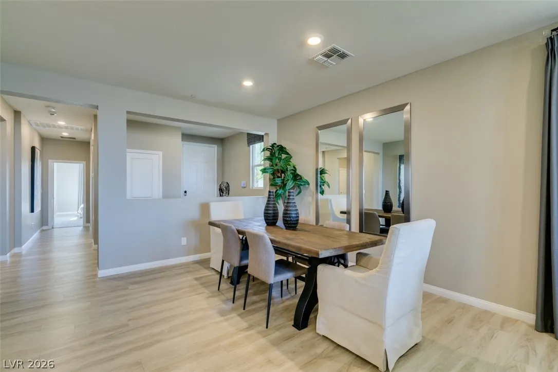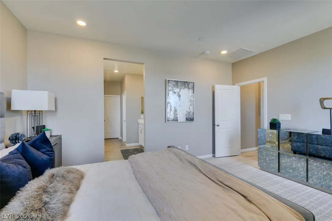 Welcome to this beautifully furnished 3-bedroom home in the sought-after community of Inspirada, offering refined comfort and effortless style. Upon entry, you’re greeted by an open-concept layout that seamlessly connects the dining area, kitchen, and living room, perfect for entertaining and everyday living. The kitchen features sleek stainless steel appliances and an oversized island with breakfast bar seating and generous counter space. Natural light fills the living room, where sliding glass doors open to a private backyard complete with patio furniture and peaceful views. All bedrooms are spacious and bright, while the primary suite offers a spa-like bath with dual sinks, a walk-in shower, a separate soaking tub, and a large walk-in closet with ample storage.