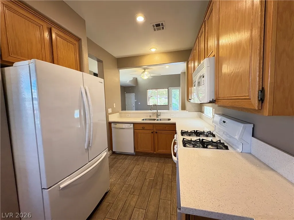 Great 2-story house with spacious floorplan that offers 3 bedrooms, 2.5 baths, tile flooring downstairs, fireplace, wood laminate flooring in bedroms, carpet in hall and stairs, ceiling fans, conveniently located near shopping, fwy, schools,