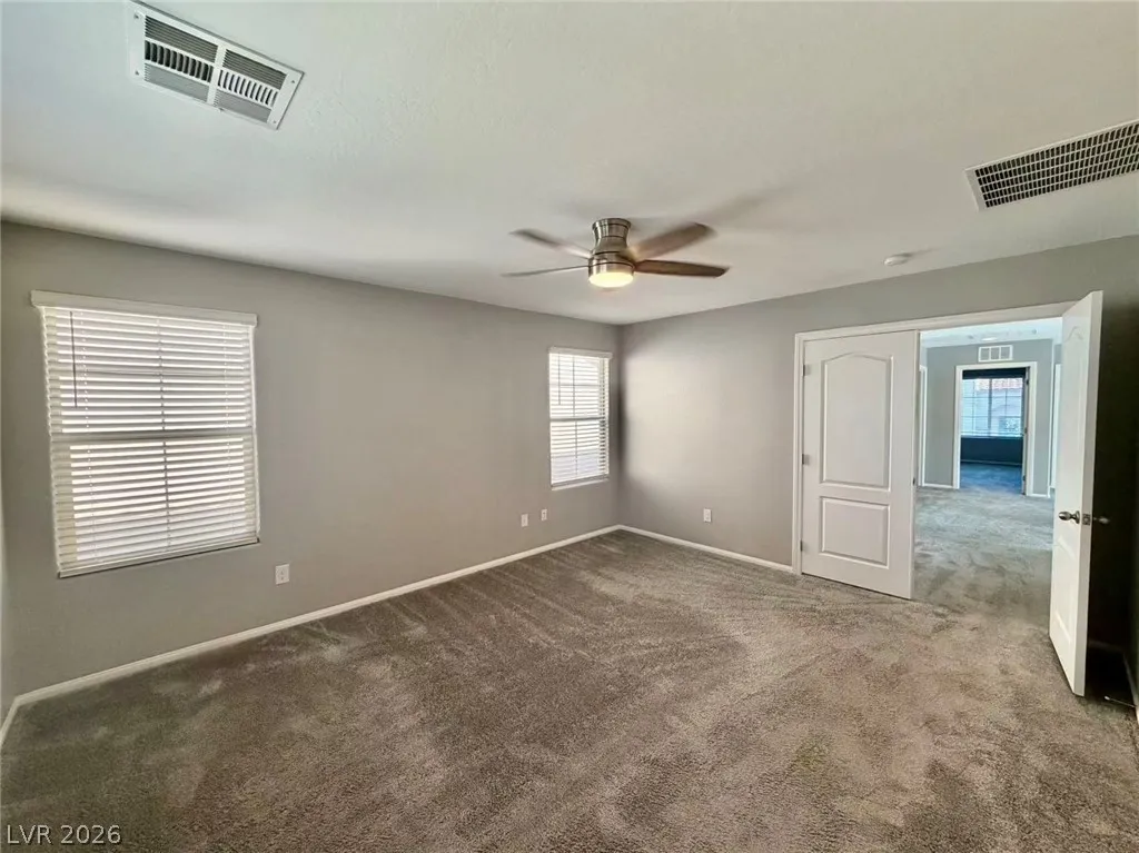 Upon stepping into this Mountains Edge home, one is immediately captivated by its modern sophistication. The expansive living area boasts sleek ceramic tile floors and a gourmet kitchen adorned with granite countertops and stainless steel appliances. Upstairs, the primary bedroom offers a generous retreat complemented by a lavish en suite bathroom. Outside, the backyard is a tranquil oasis featuring a paved patio and easy-care landscaping. Community perks such as a pool, splash pad, picnic spot, and playground further elevate the allure of this refined residence. The property has solar panels, which reduce your monthly cost on the power bill. Small pet under 30lbs allowed. Please contact a realtor to see the property in person.