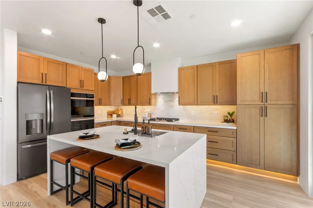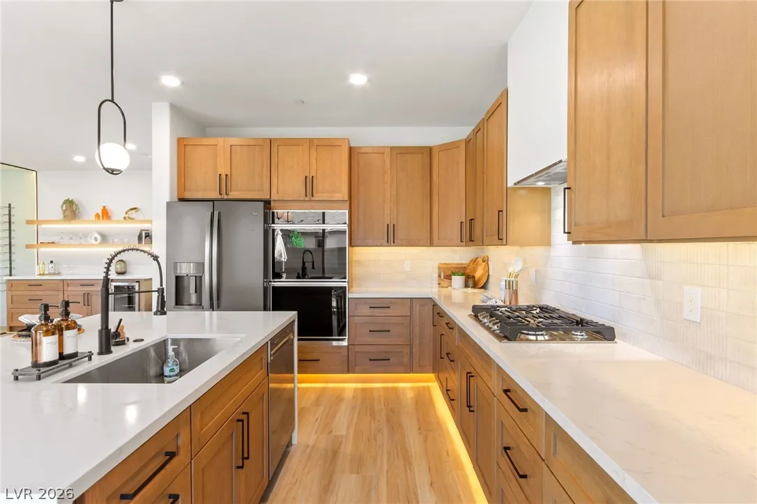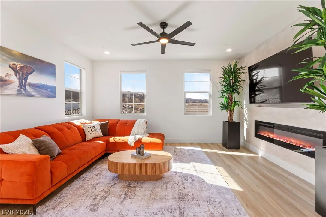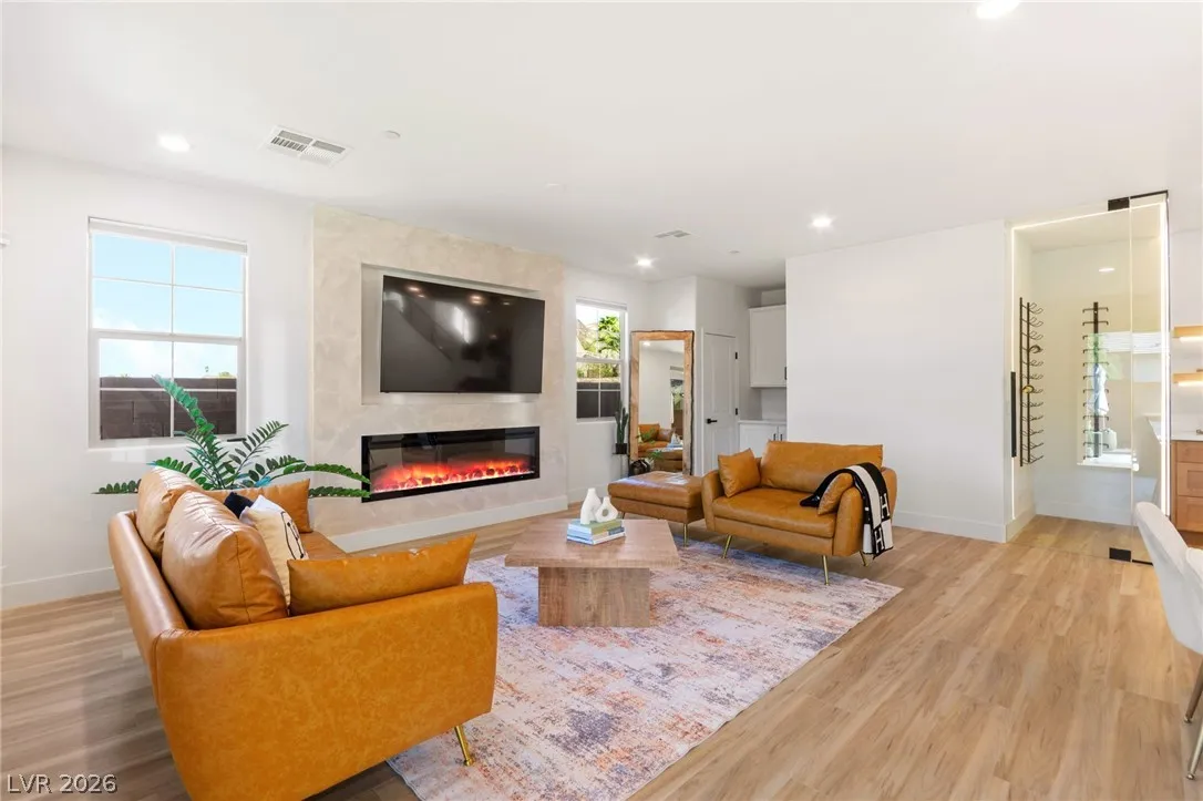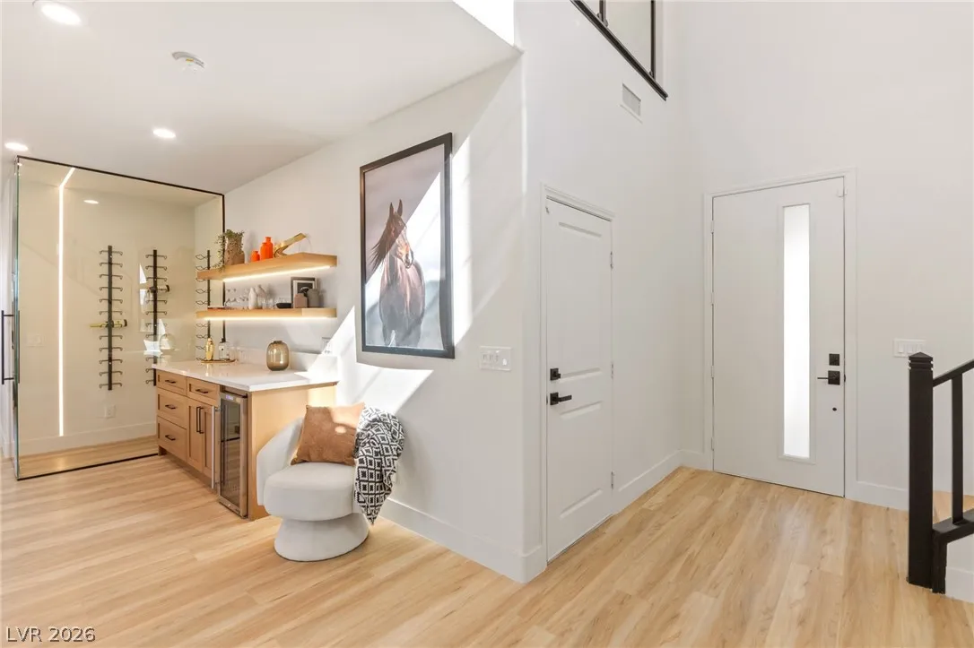 Welcome to this fully renovated, design-forward Lake Las Vegas home on a premium corner cul-de-sac lot in Alta Fiore. Truly one of a kind, it features a striking glass staircase, glass three door garage and a seamless open-concept layout built for entertaining. Including two brand new 75″ TVs. The chef’s kitchen showcases custom European cabinets, quartz waterfall island, under mount LED lighting and soft-close drawers, flowing effortlessly into the dining and living areas. Enjoy a custom glass wine cellar and sleek dry bar with LED floating shelves. Dual sliders open to a low-maintenance backyard w/turf and space prepped for a future spa. The primary suite offers mountain views and a spa-inspired bath with soaking tub, rain shower, and body jets. Epoxy garage floors with built-in storage and EV hookup. Designer exterior lighting enhances the modern curb appeal. Move-in ready w/$25K Lake Las Vegas Sports Club & Reflection Bay Golf Membership initiation fee waived. Lets make it yours!