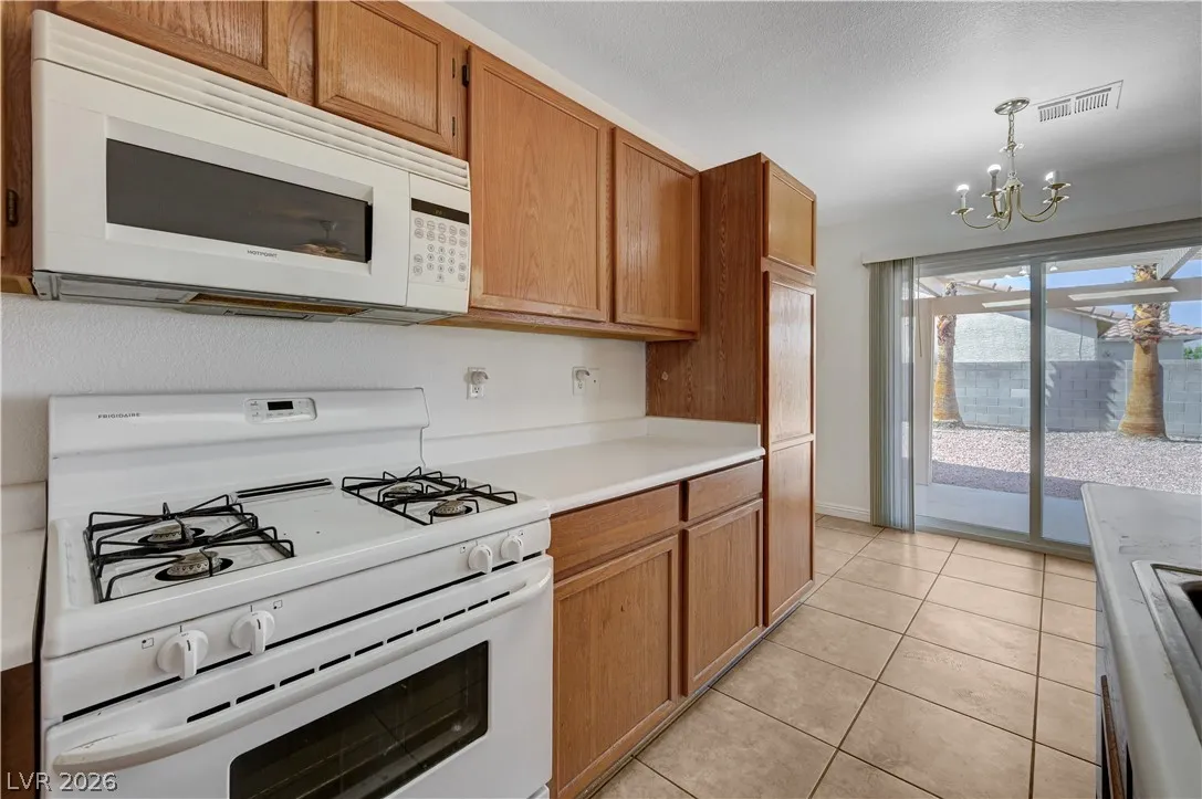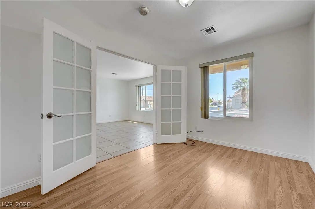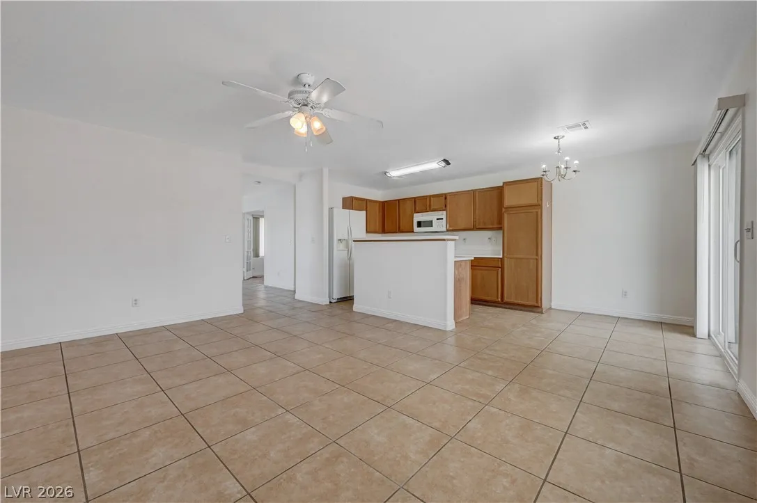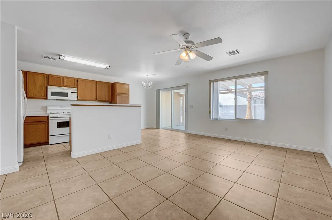 This 3bd + den, 2 bath home is located in the north valley near shopping, parks, schools, and restaurants. Features an open floor plan with new energy-efficient windows throughout, offering great natural light and improved efficiency. Living and dining areas include ceiling fan, light, and blinds. Den offers double French doors, laminate flooring, overhead light, and blinds—ideal for a home office or flex space. Secondary bath includes a tub/shower combo. Laundry room comes with washer, dryer, and storage cabinets. Attached 2-car garage with opener, shelving, and direct entry. Bedrooms feature carpet, ceiling fans with lights, and blinds; third and primary include walk-in closets. Primary bath has double sinks, makeup area, and tub/shower combo. Family room includes ceiling fan and blinds. Kitchen offers island, breakfast bar, laminate counters, and all appliances. Large backyard with covered patio and low-maintenance desert landscaping, perfect for relaxing or entertaining.