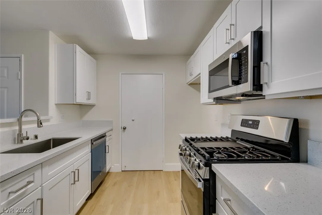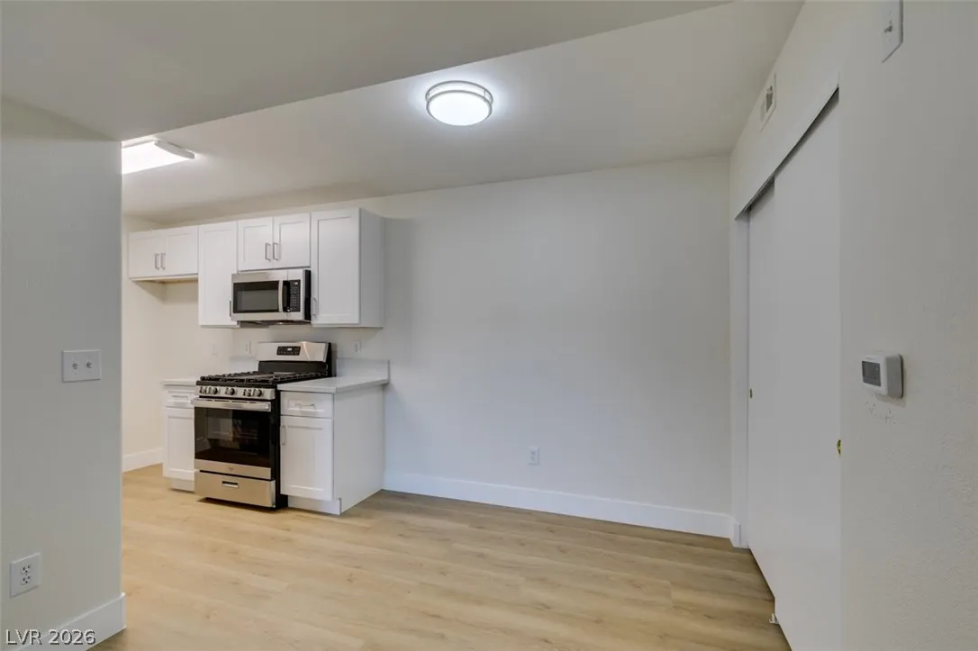 Welcome to this beautifully remodeled condo with a rare private garage! Thoughtfully updated throughout, this move-in-ready home features brand new cabinets, flooring, fixtures, baseboards, and fresh paint. Enjoy a stylish kitchen with stainless steel appliances, plus the convenience of an included washer and dryer. Located in a centrally positioned gated community, this home offers the perfect blend of modern upgrades and everyday ease.