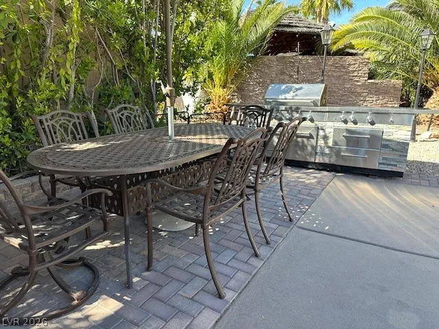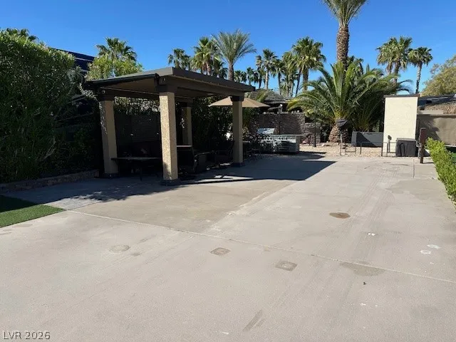 Lot 114 at Las Vegas Motorcoach Resort presents a fantastic opportunity to own a well-appointed site in a highly desirable guard-gated community, ideally located just around the corner from the clubhouse, pool, fitness center, and numerous resort-style amenities; this beautifully maintained lot features lush, mature landscaping that creates a private and inviting setting, a hard roof shade structure for comfortable outdoor living, a BBQ grill perfect for entertaining, a convenient storage shed, and included patio furniture so you can start enjoying the space immediately, making it an excellent choice for those seeking both convenience and luxury in the heart of Las Vegas motorcoach living.