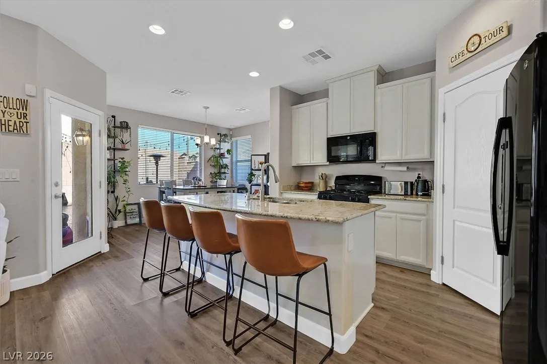 Gorgeous three bedroom detached home in extremely sought after gated community within in Mountain’s Edge, featuring access to a community pool, splash pads and playground. Fresh interior paint and new laminate flooring downstairs create a clean, updated feel throughout. The open floor plan offers a spacious layout ideal for both everyday living and entertaining. The kitchen is equipped with granite countertops, a large island, and a walk-in pantry, providing both style and functionality.