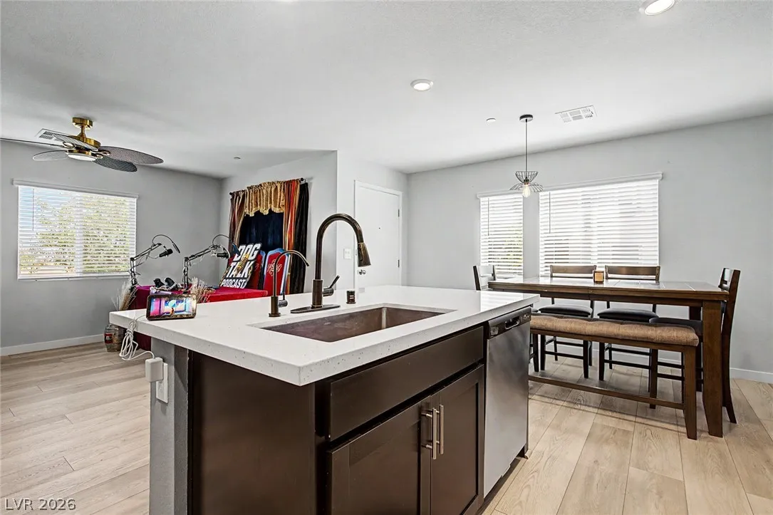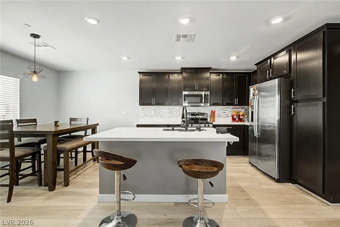 Welcome to this beautiful Lennar townhome in the Master Plan Community Sunstone surrounded by majestic mountains and outdoor living!! Great corner lot backing up a trail* 4 Bedrooms plus Loft & 3 Baths* One Bedroom is downstairs with a 3/4 Bath* Open floorplan w/ natural light* Kitchen w/ quartz countertops, island, custom cabinets and all stainless steel appliances included* Vinyl plank, ceramic tile & carpet flooring* Large loft upstairs with view of the mountains* Primary bedroom w/ walking closet* Good size secondary bedrooms w/ ceiling fans*Kinetico water filtration and built in pest control system* Subdivision has pool & park but you also have access to all the Sunstone amenities* Near freeway US-95* 25 minutes from Mt Charleston perfect for hiking and/or skiing December through March. A must see!!