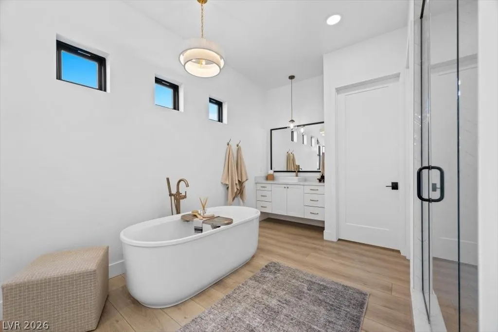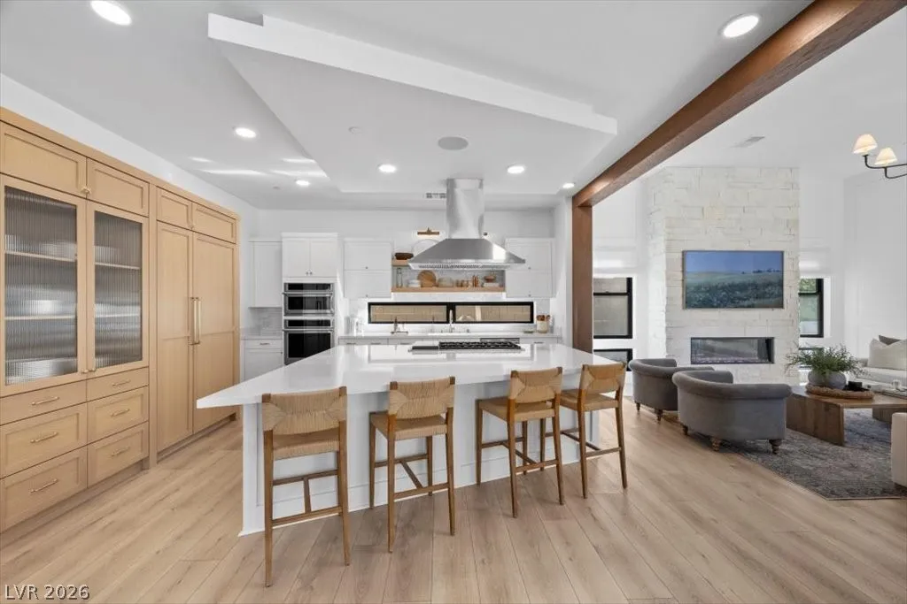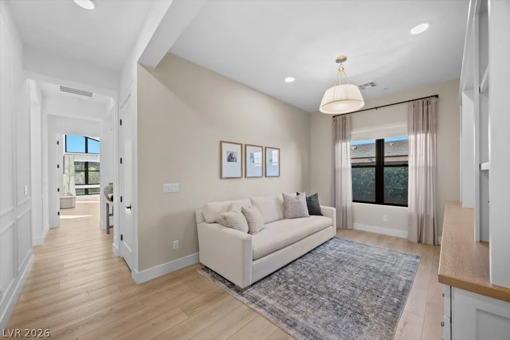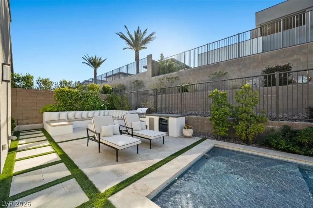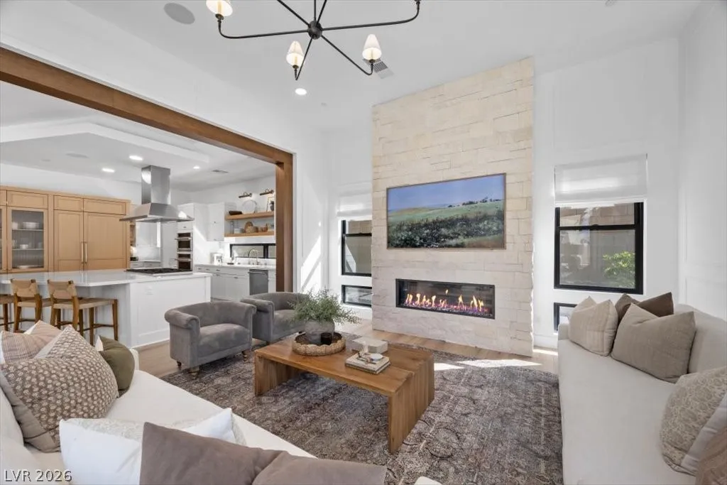 An Achitectural Showpiece, $550k+ in designer upgrades, located in the most desirable part of Summerlin, “West Summerlin”, Neslted within the prestigious Sandalwood Community. This Exceptional Home welcomes you through a “New Upgraded Custom European Glass Pivot Door” into luminous interiors, defined by Rift White Oak Millwork, Bespoke Finishes, & sophisticated modern design. The gourmet kitchen & butler’s pantry feature top-tier appliances, dual ovens, wine refrigerator, & custom cabinetry designed for both elegance & function. The home offers “4” bedrooms plus a Private Den, with thoughtfully designed custom closets throughout. Dramatic floor-to-ceiling fireplaces anchor the living & master bedroom, creating warm yet refined gathering spaces. Expansive Pocket Sliders seamlessly connect indoor & outdoor living to a Tuscan-Inspired Backyard Retreat featuring an oversized spa, built-in BBQ, fire pit lounge, & lush landscaping—an extraordinary setting for luxury living & entertaining.