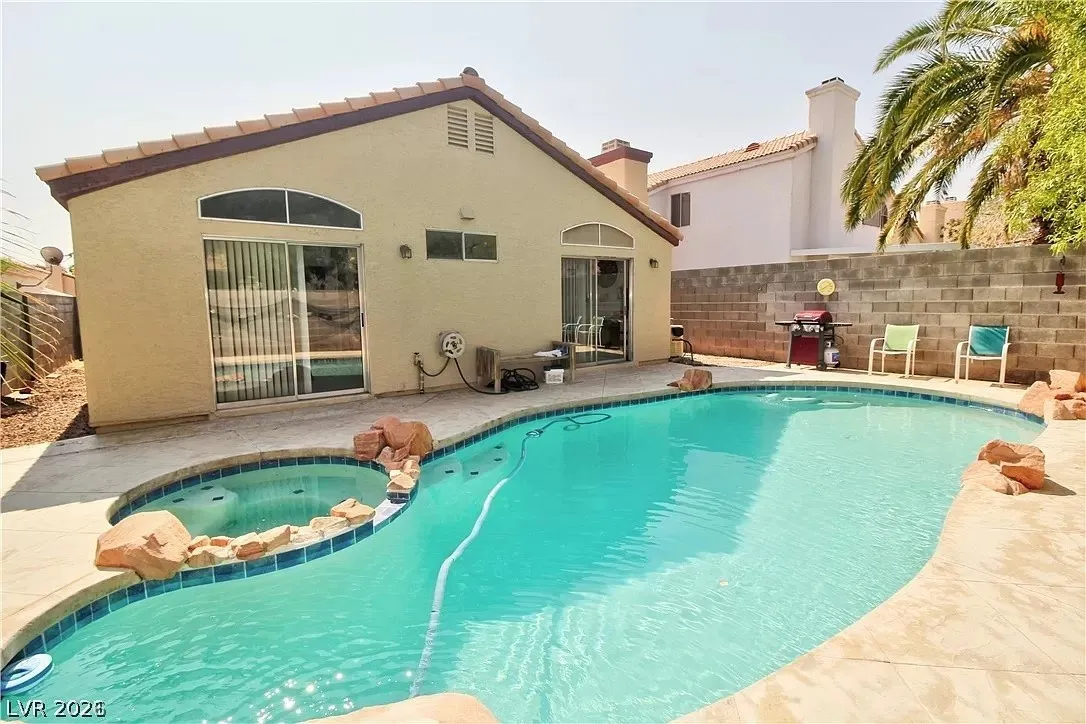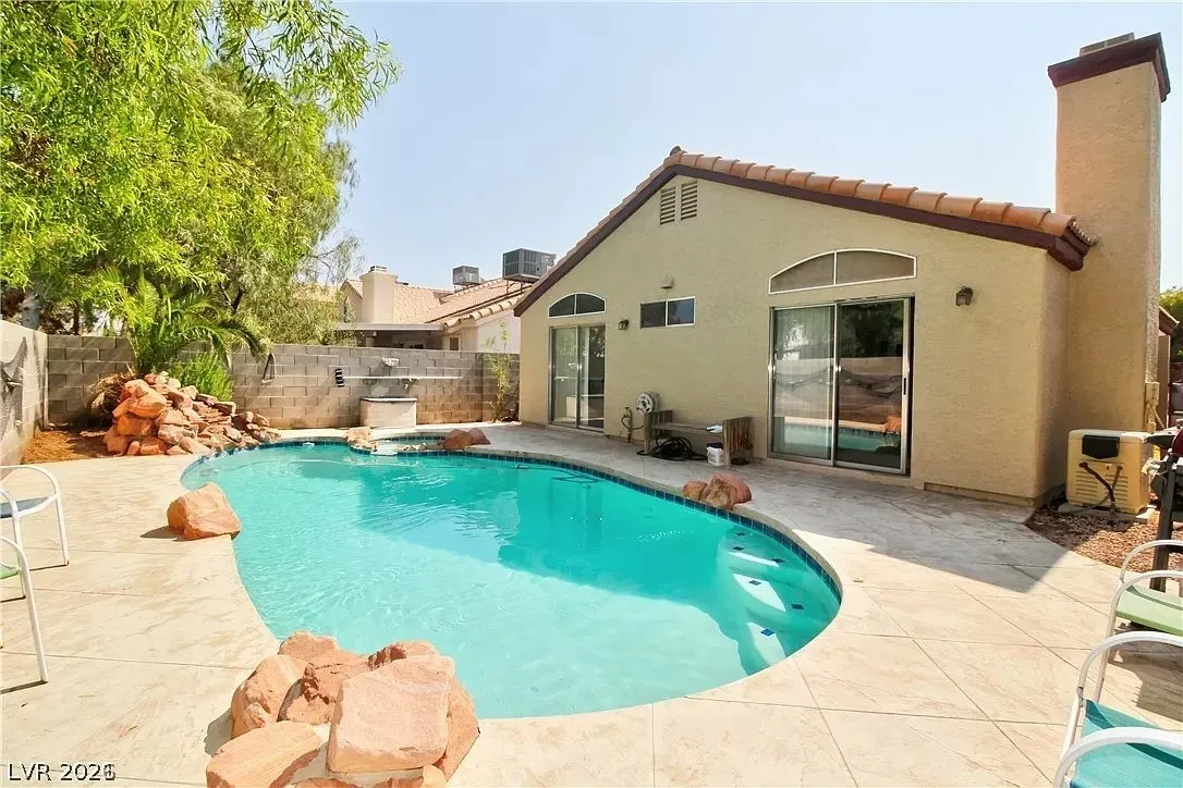 Welcome to this pristine single-story home offering the perfect blend of comfort, style, and functionality with no HOA! This beautifully upgraded 2-bedroom, 2-bath residence features 1,216 sq ft of thoughtfully designed living space with vaulted ceilings and abundant natural light. The interior showcases new laminate wood flooring, plush new carpet, and a cozy gas fireplace. The fully renovated kitchen is a standout, complete with new cabinets, granite countertops, a center island, and stainless-steel appliances including refrigerator, dishwasher, microwave, and gas range. Enjoy the convenience of an indoor laundry closet with washer and dryer included. Step outside to your private backyard oasis featuring a sparkling pool and spa, low-maintenance landscaping, covered patio, and a dedicated dog run. Situated on a 4,356 sq ft lot with a 2-car attached garage, this home offers both comfort and convenience in one exceptional package.