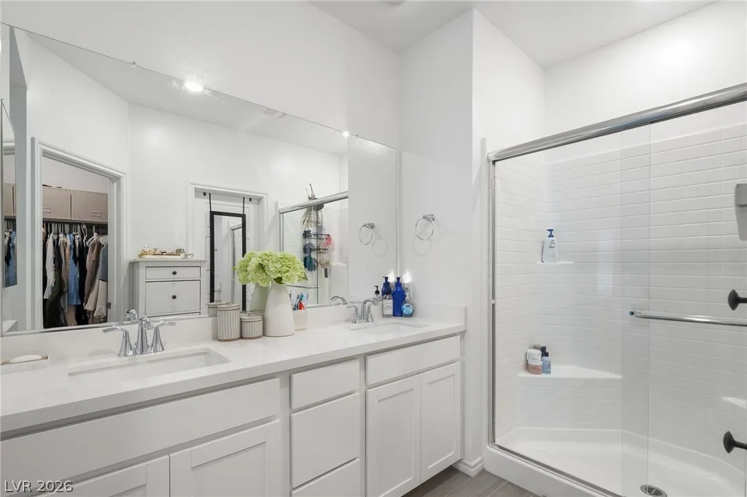 oversized island, luxe gold hardware, upgraded cabinetry, modern neutral tile flooring, walk-in closets, and a