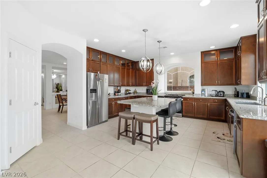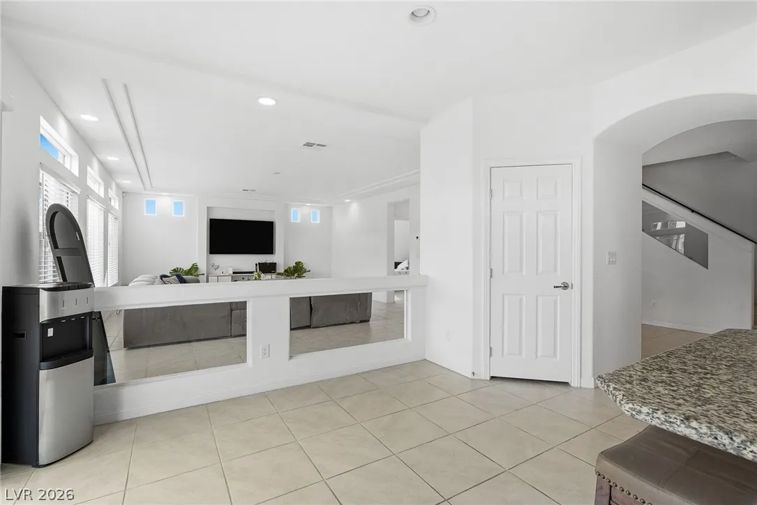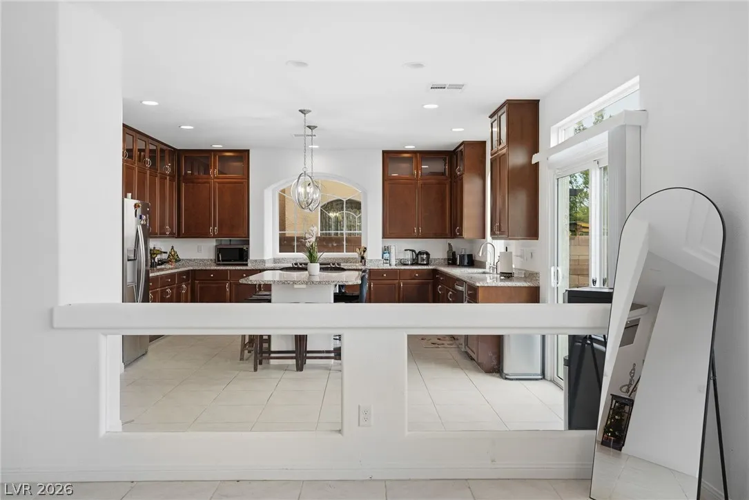 high ceilings, recessed lighting & a beautifully appointed kitchen with granite counters, large island, ample