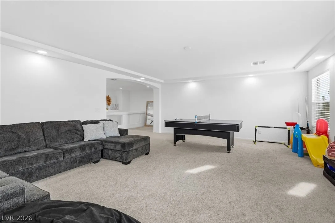 shower. A massive game room provides flexible space for media, work, or recreation, while secondary bedrooms are
