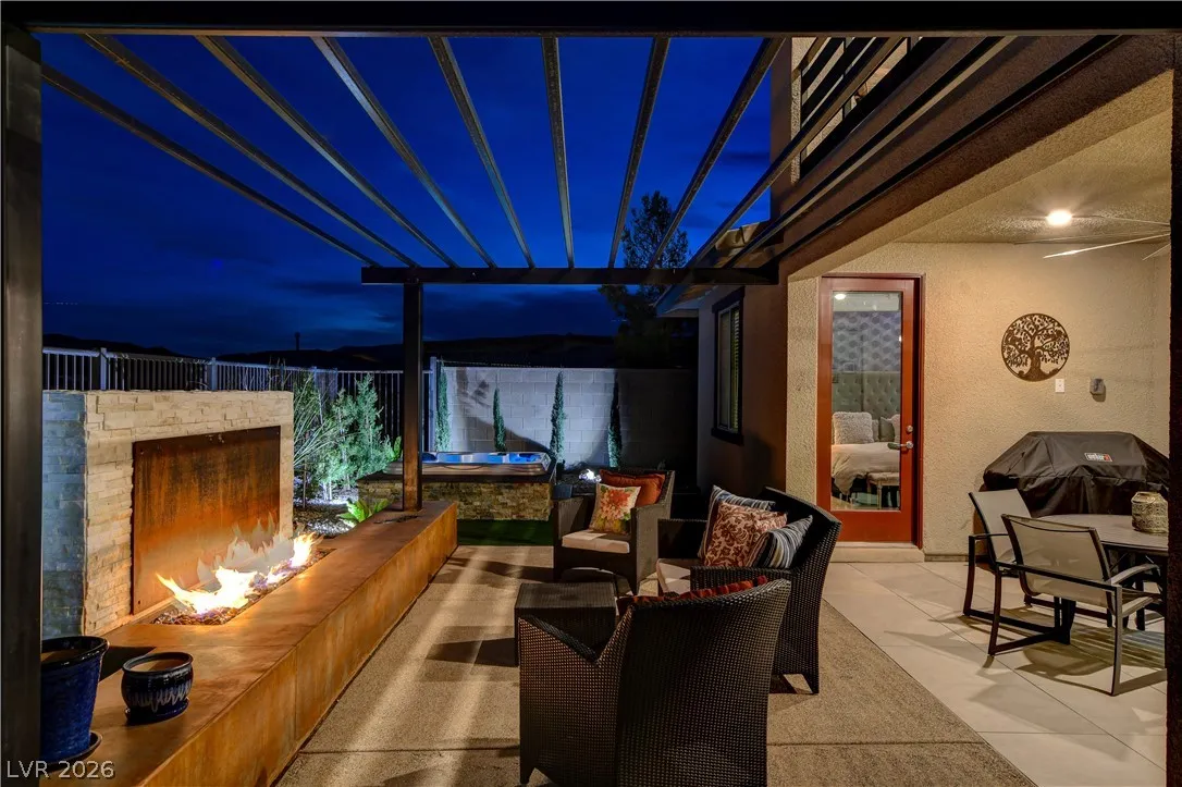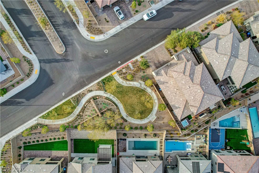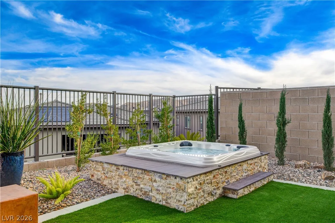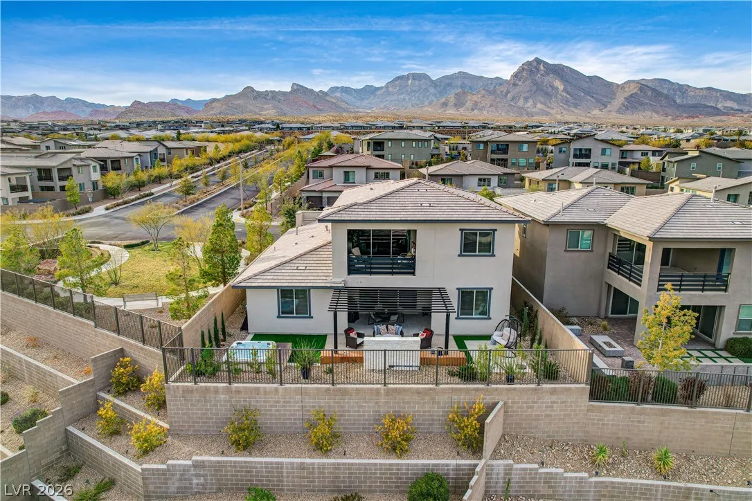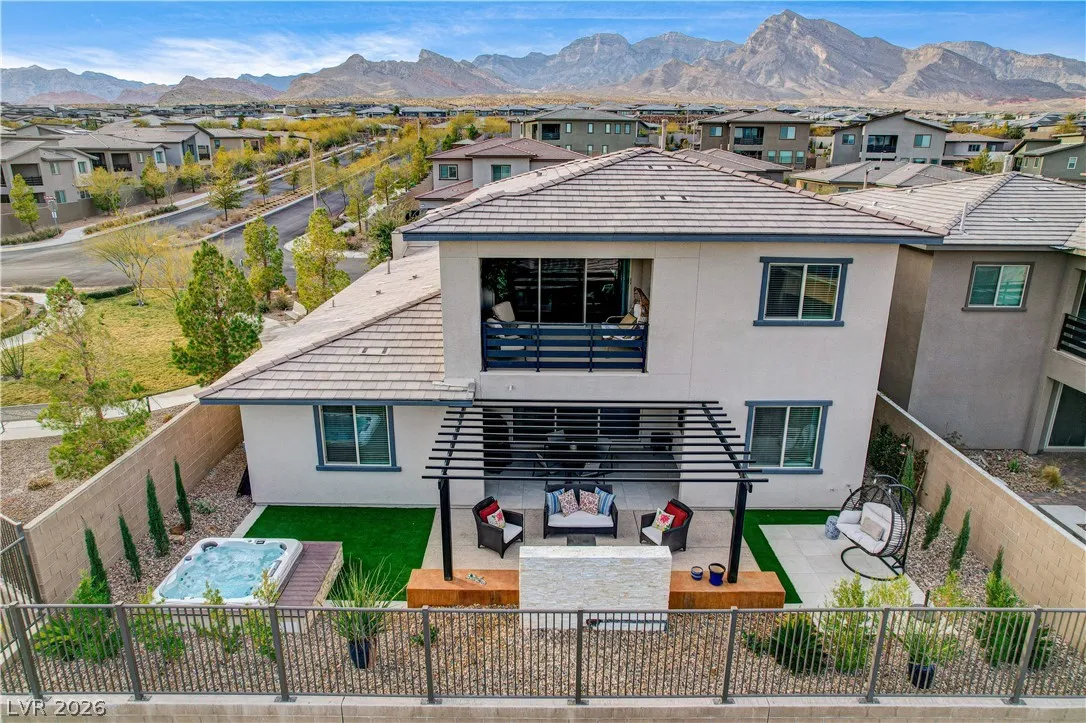 Summerlin West / Stonebridge • Strip, city & mountain views • 0.3 mi to Stonebridge Park & trails. 4-bed, 3-bath home with nearly 2700 sq ft, downstairs primary suite with its own laundry, 3-car garage and open great room design. Quartz kitchen includes large island, built-in ovens, gas cooktop, stainless appliances, walk-in pantry and roll-out shelving and offset dining room. Downstairs primary suite offers custom closet, separate tub, separate shower and laundry access. Upstairs includes secondary bedrooms, loft/family room and full laundry. Outdoor living features covered patio, sunken spa, pergola, built-in grill, fire feature, synthetic grass and desert landscaping. Finished garage includes epoxy floor and storage. 3D tour and floor plans available. Near Stonebridge Park, Summerlin trails, Downtown Summerlin, Red Rock Canyon, Red Rock Casino Resort & Spa and 215/W Charleston access.